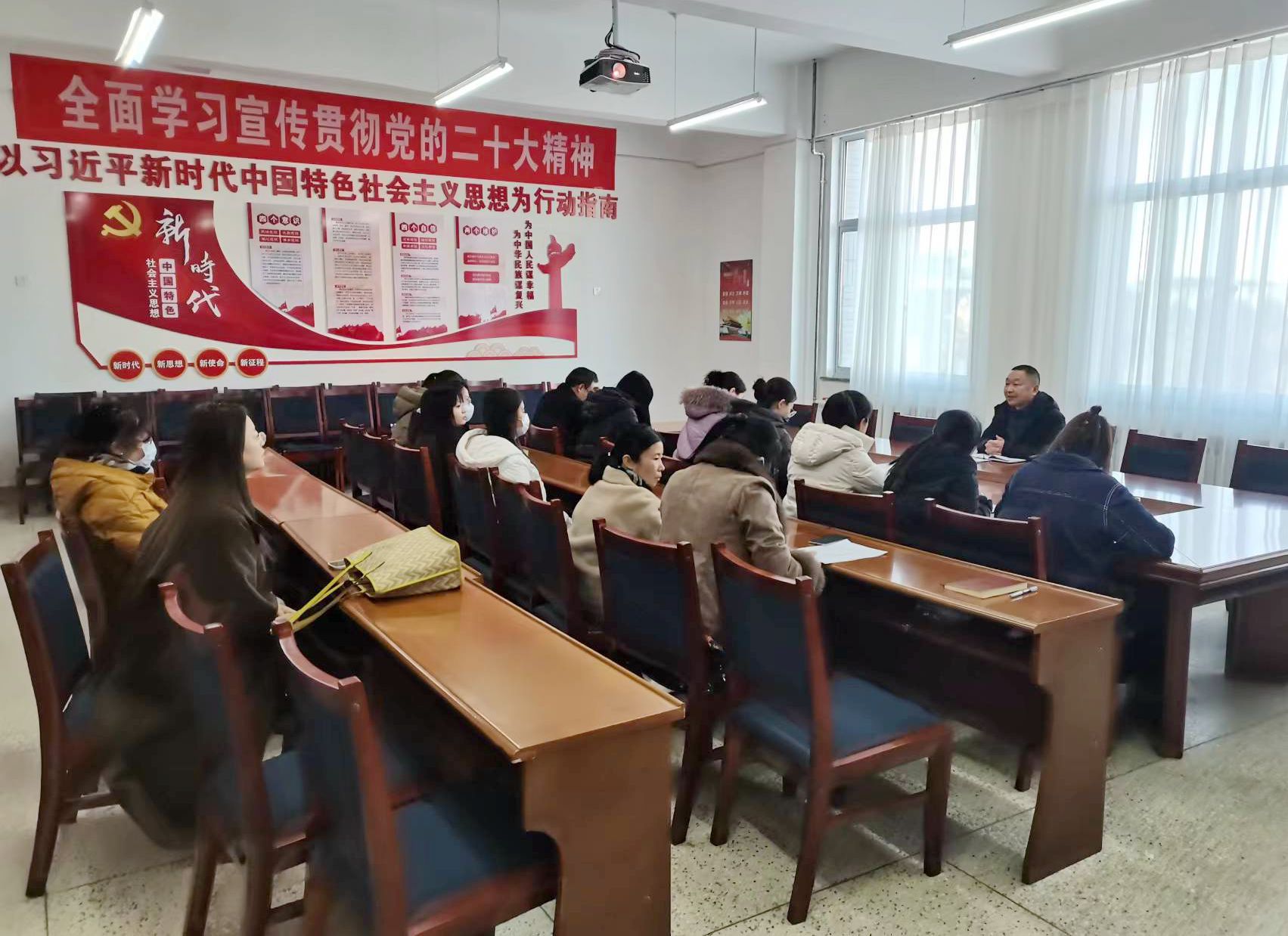 今年是習(xí)近平總書記在學(xué)校思想政治理論課教師座談會(huì)上發(fā)表重要講話五周年,為推動(dòng)學(xué)習(xí)貫徹習(xí)近平新時(shí)代中國(guó)特色社會(huì)主義思想走深走實(shí),進(jìn)一步提高思政課教學(xué)質(zhì)量,3月15日,馬克思主義學(xué)院召開學(xué)習(xí)貫徹習(xí)近平總書記“3·18”重要講話精神座談會(huì),馬克思主義學(xué)院負(fù)責(zé)人劉心主持會(huì)議,全體教師參加座談。