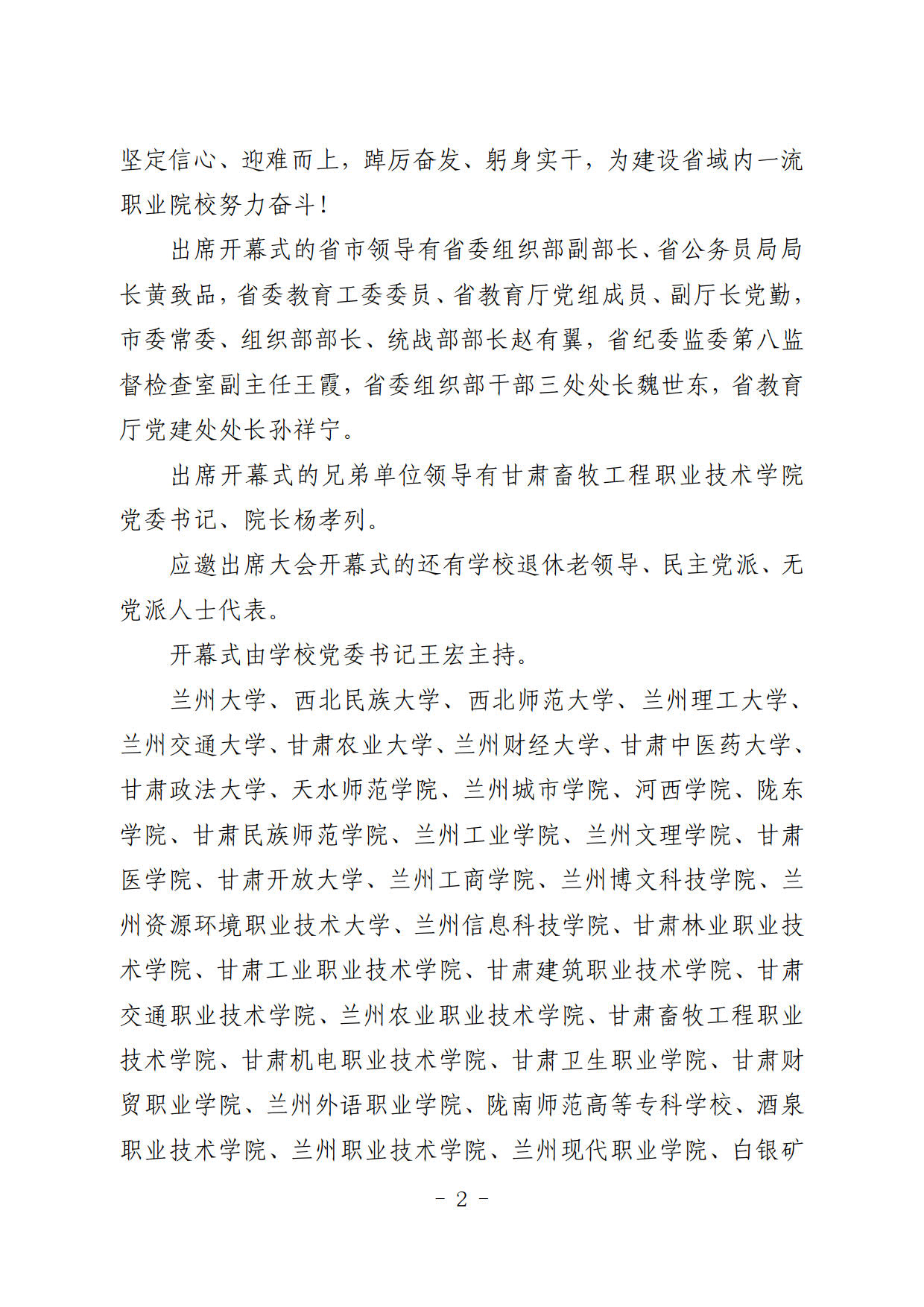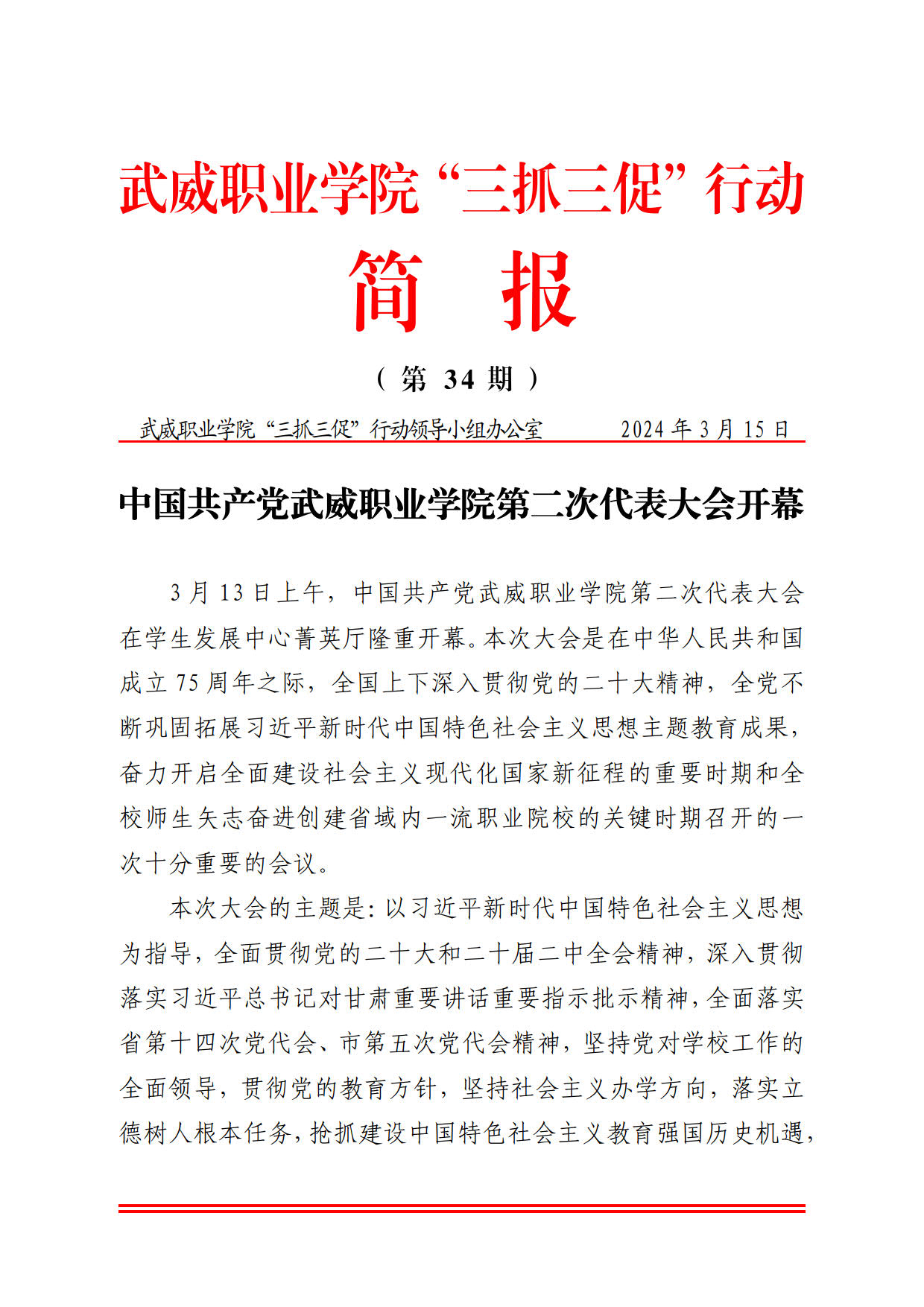 簡報(bào)第34期:中國共產(chǎn)黨武威職業(yè)學(xué)院第二次代表大會開幕