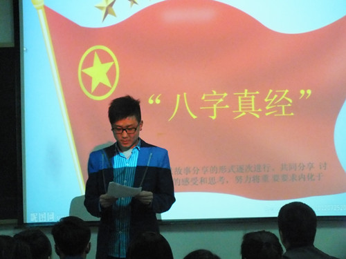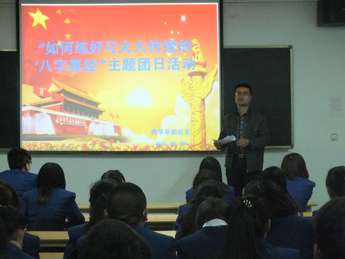 主題團(tuán)會(huì)上,系學(xué)生會(huì)干部和系團(tuán)干部以及各班學(xué)生代分別就習(xí)總書記的“八字真經(jīng)”的精神通過講故事,說道理等形式進(jìn)行了表達(dá),活動(dòng)氣氛熱烈,大家踴躍發(fā)言,從生活、學(xué)習(xí)各個(gè)方面的小事說起,就“八字真經(jīng)”的內(nèi)涵進(jìn)行了深入的剖析。
