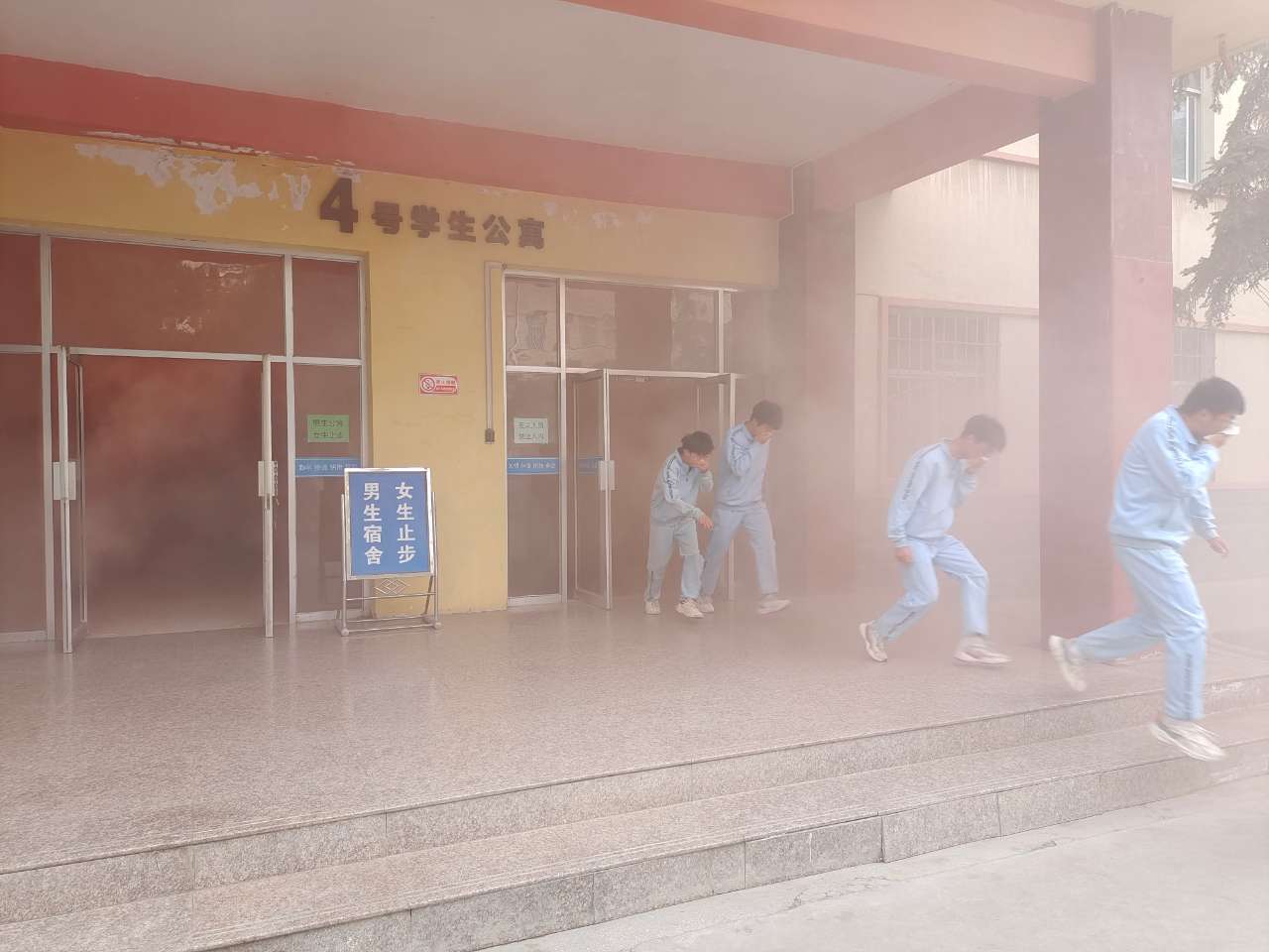 14時(shí)40分,疏散演練正式開始。隨著火災(zāi)警報(bào)響起,各學(xué)生公寓樓冒出滾滾濃煙,公寓管理人員迅速組織學(xué)生有序疏散。在軍訓(xùn)教官、學(xué)生管理人員的引導(dǎo)下,同學(xué)們按照動(dòng)作要領(lǐng),用濕毛巾捂住口鼻,俯身彎腰按照安全出口指示牌指引快速、有序從疏散通道撤離到體育場,整個(gè)過程緊張有序、實(shí)用性強(qiáng),收到了預(yù)期效果。