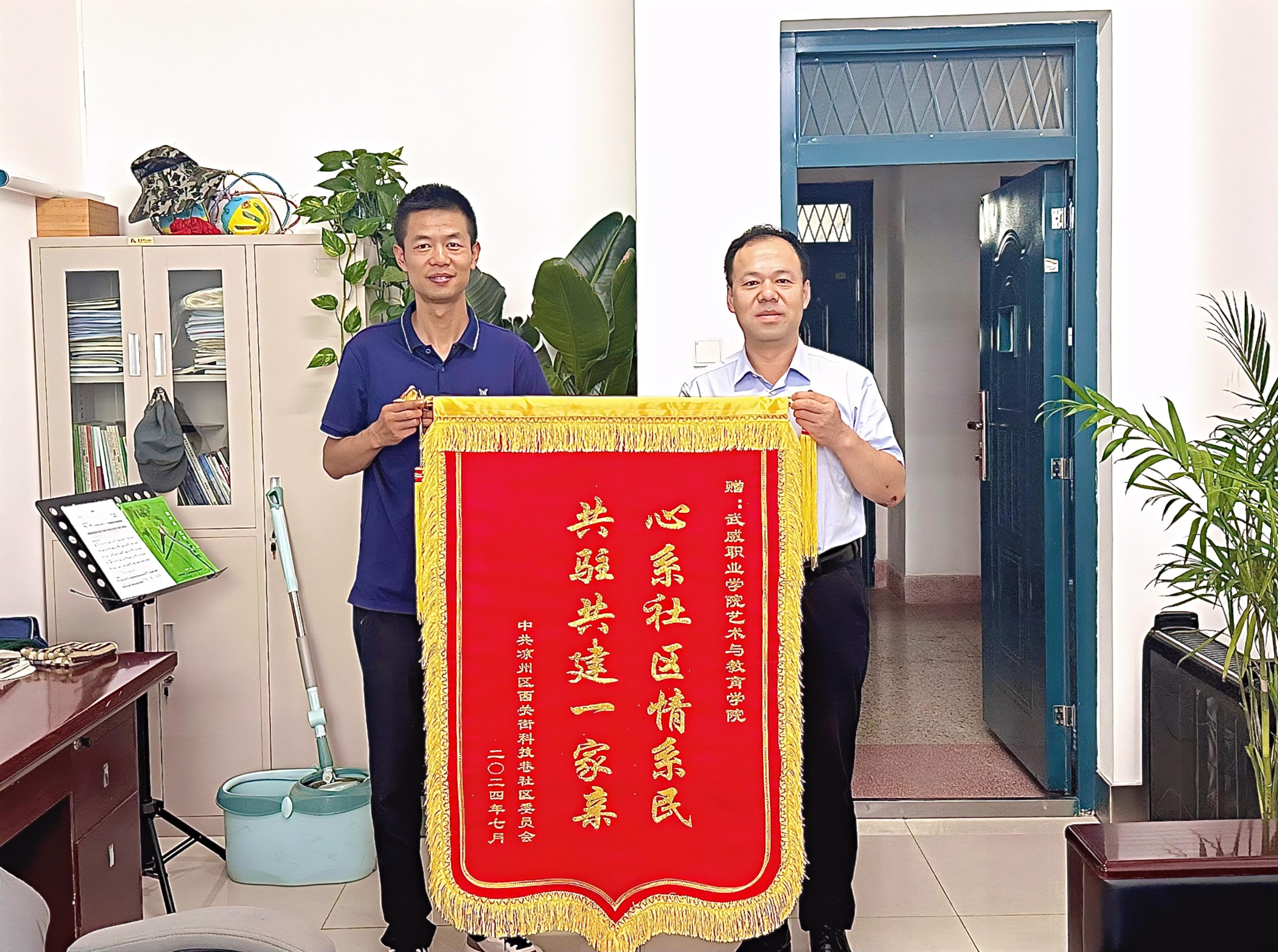 一份榮譽,一份信任,一份鼓勵。此次贈旗是對我院在西關(guān)科技巷社區(qū)開展社會實踐活動成果的充分肯定,有助于進一步調(diào)動學生參與社會實踐活動的積極性,教育引導學生在社會課堂中“受教育、展才干、作貢獻”。下一步,我院將深入推進學生志愿服務活動,為基層社會治理和文明武威高質(zhì)量發(fā)展添磚加瓦!