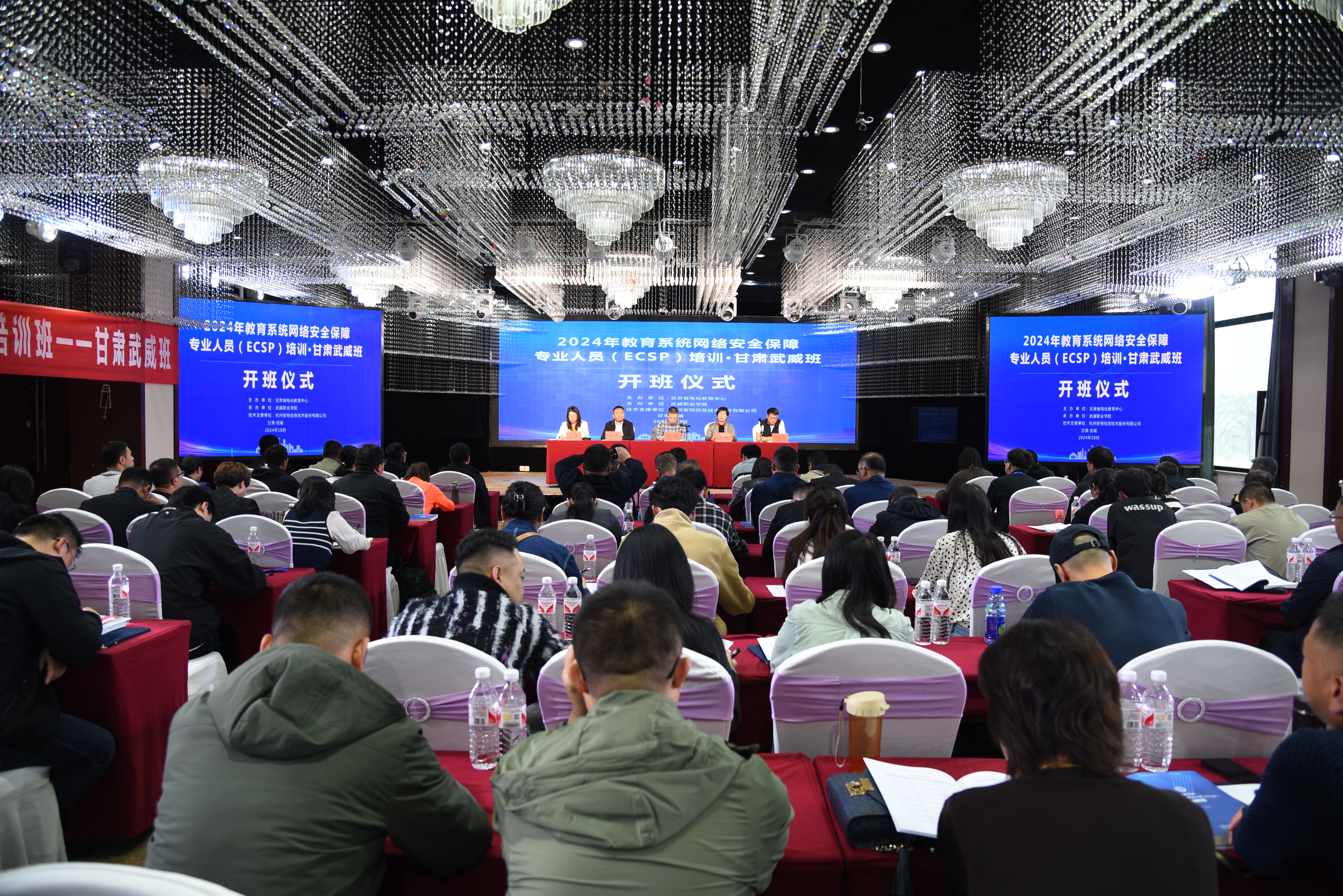 2024年10月15日,由甘肅省電化教育中心主辦,我校承辦的教育部2024年教育系統(tǒng)網(wǎng)絡(luò)安全保障專業(yè)人員(ECSP)培訓(xùn)班順利開班,來自省內(nèi)外各級(jí)教育行政部門及其直屬單位、高等院校和其他教育機(jī)構(gòu)的90余名網(wǎng)絡(luò)安全和信息化從業(yè)人員參加培訓(xùn)。甘肅省電化教育中心主任梁翔,學(xué)校黨委委員、副校長(zhǎng)何毅出席開班式,甘肅省電化教育中心科長(zhǎng)伏蓉主持開班式。