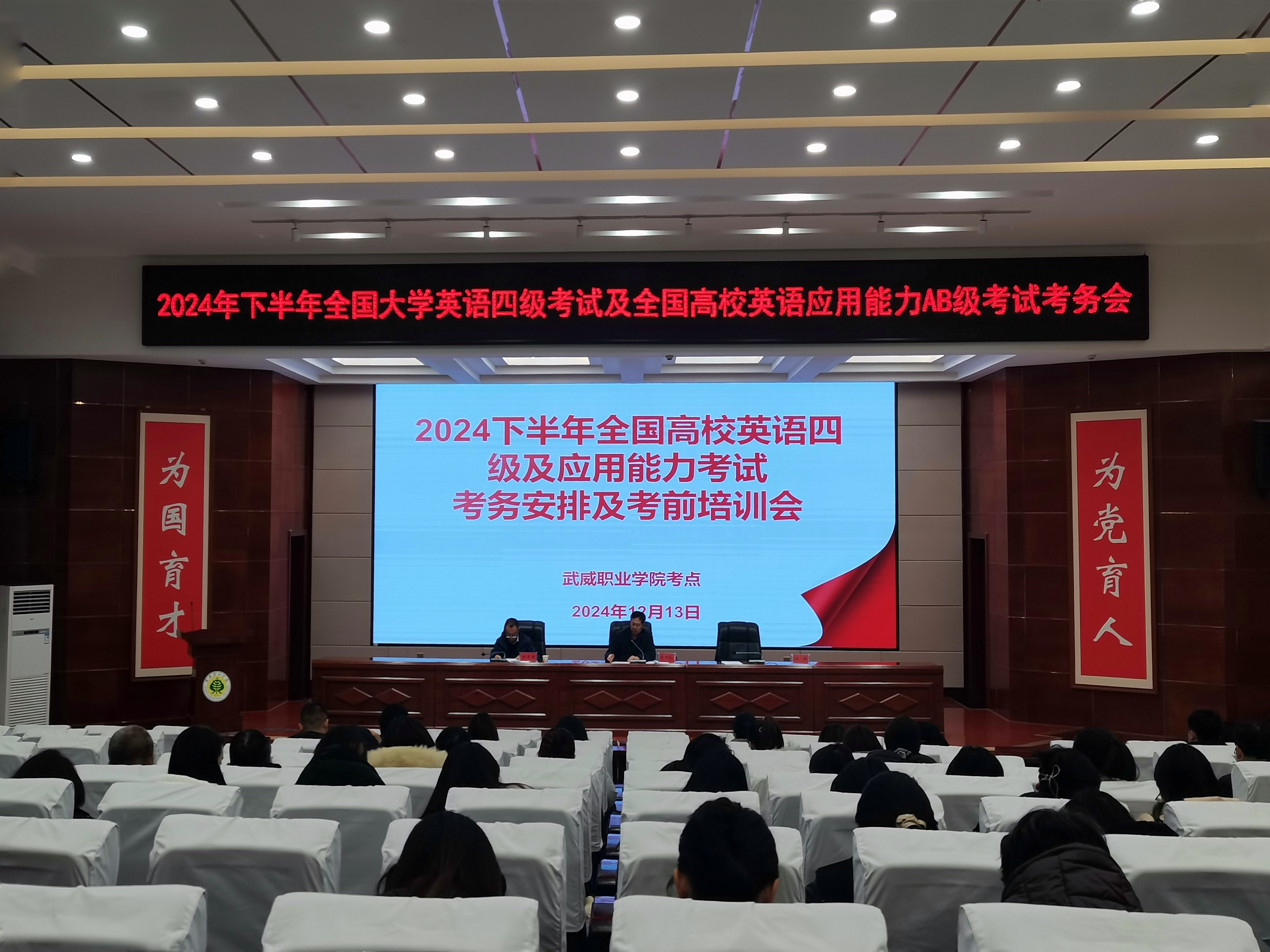 12月13日下午,在菁英廳召開了全國大學生英語四級暨全國高校英語應(yīng)用能力AB級考試的考務(wù)安排及考前培訓會議。會上,黨委副書記、副校長張開禮強調(diào)了考試紀律的重要性,要求所有監(jiān)考人員和考生嚴格遵守考試規(guī)定,確??荚嚨墓健⒐晚樌M行。培訓考試中心主任顏魯薪就考試的各項具體事宜進行了詳細安排,包括考試流程、考場布置、試卷分發(fā)與回收等環(huán)節(jié),確保考試工作的有序進行。