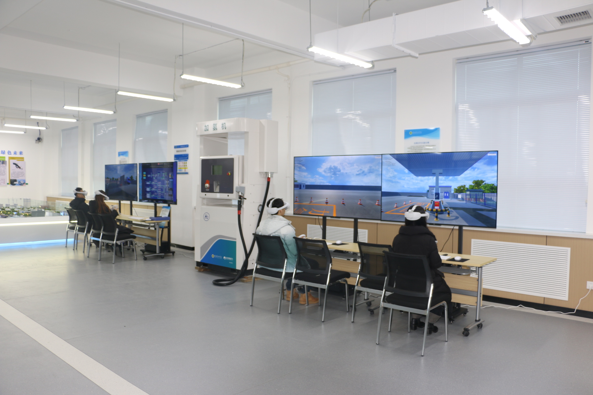 本實(shí)訓(xùn)室配備了1臺(tái)加氫機(jī)和4臺(tái)虛擬現(xiàn)實(shí)(VR)設(shè)備,能夠開(kāi)展加氫站結(jié)構(gòu)認(rèn)知實(shí)訓(xùn)、加氫站工作流程實(shí)訓(xùn)、加氫站設(shè)備運(yùn)行維護(hù)實(shí)訓(xùn)以及加氫站安全管理實(shí)訓(xùn)等項(xiàng)目。借助這些實(shí)訓(xùn)項(xiàng)目,學(xué)生可以詳細(xì)了解加氫站、加氫機(jī)以及加氫槍的結(jié)構(gòu)、加氫工作流程、加氫安全管理以及加氫設(shè)備運(yùn)行維護(hù)等方面的知識(shí),從而為將來(lái)從事加氫站相關(guān)工作筑牢堅(jiān)實(shí)的基礎(chǔ)。