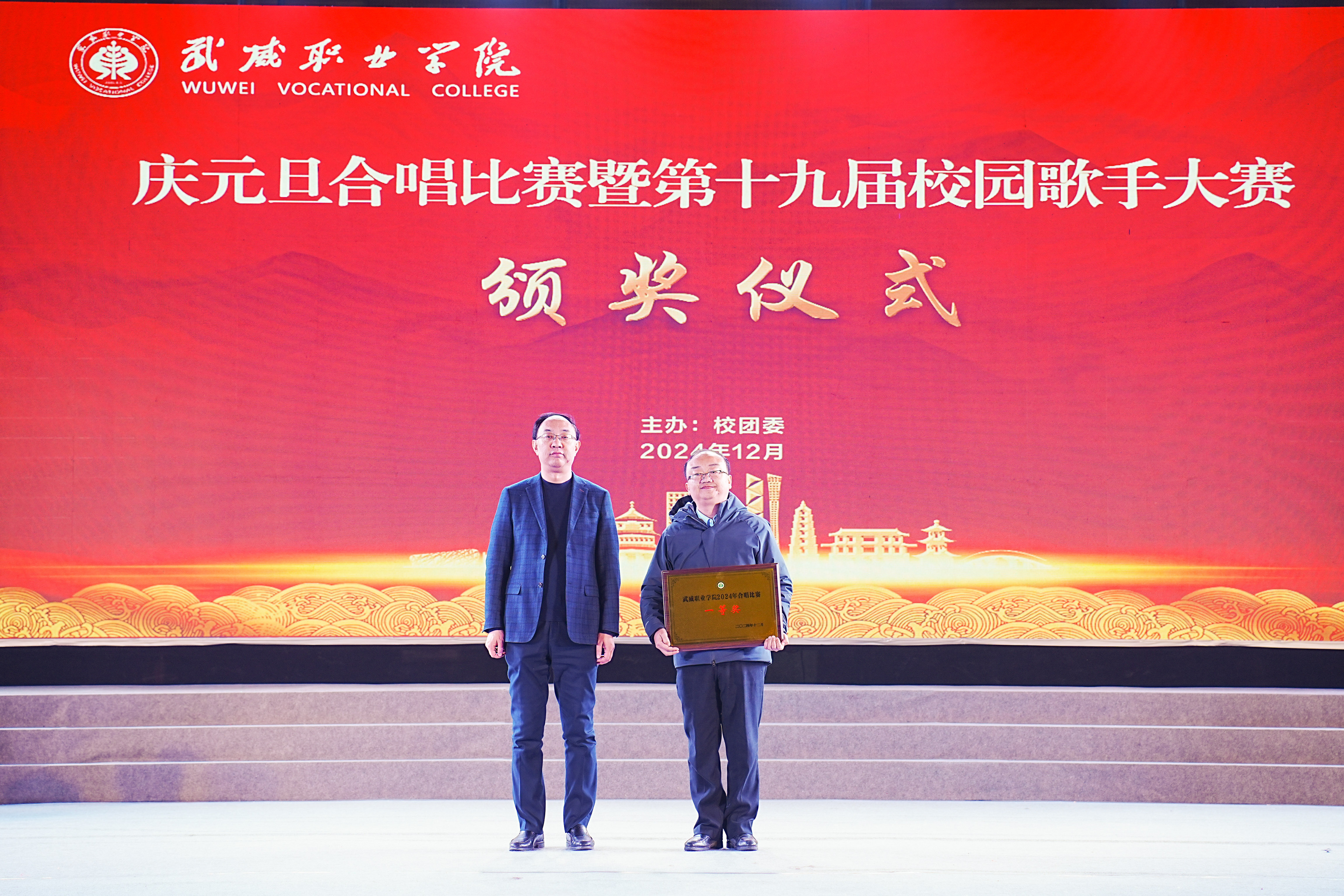 歌聲獻(xiàn)禮時(shí)代,青春唱響未來(lái)。12月26日晚,學(xué)?!皯c元旦”合唱比賽暨第十九屆校園歌手大賽在體育館成功舉辦。學(xué)校黨委書(shū)記王宏出席活動(dòng)并為獲獎(jiǎng)集體和個(gè)人頒獎(jiǎng),黨委委員、副校長(zhǎng)王守云出席活動(dòng),各二級(jí)學(xué)院和相關(guān)部門(mén)負(fù)責(zé)人與2000余名師生現(xiàn)場(chǎng)觀看了比賽。