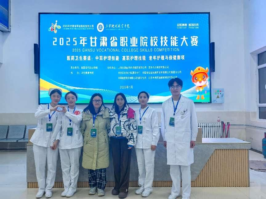 近日,由甘肅省教育廳、人社廳、財政廳等5部門主辦的2025年全省職業(yè)院校技能大賽圓滿閉幕。我院共有5組師生分別參加了臨夏現(xiàn)代職業(yè)學院賽點醫(yī)藥衛(wèi)生賽道中護理技能與老年護理與保健賽項、甘肅農(nóng)業(yè)職業(yè)技術學院賽點公共管理組健康養(yǎng)老照護賽項。