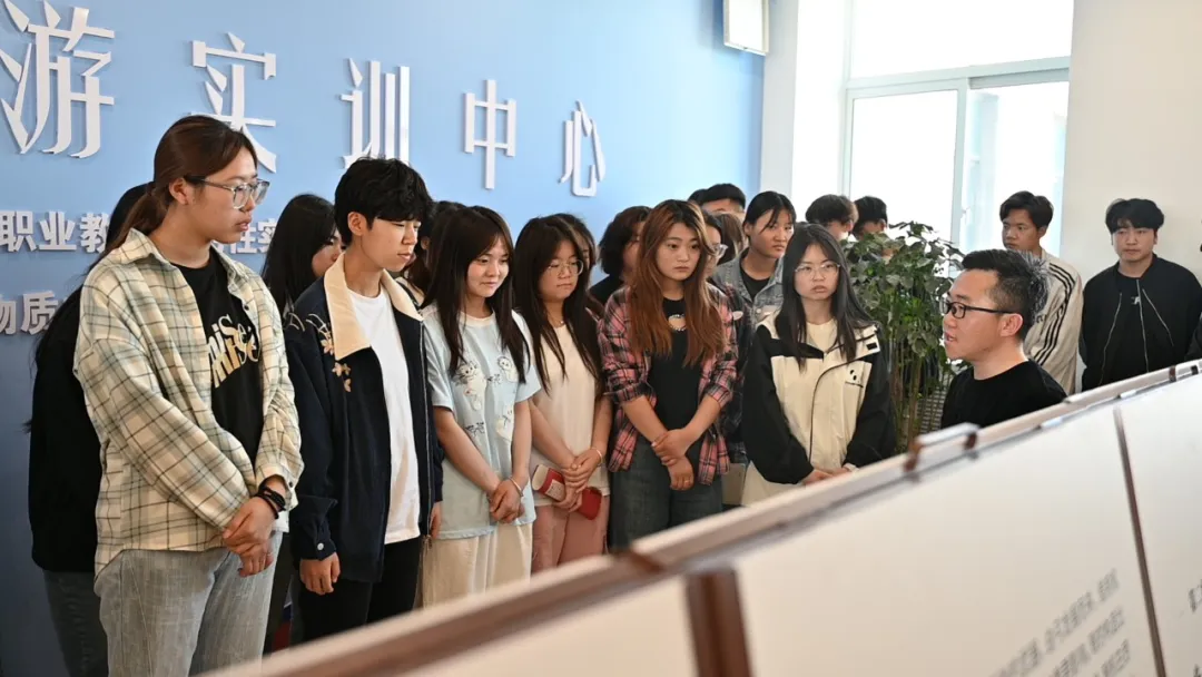 專題講座結束后,趙啟杰和同學們一同來到室外展區(qū),為師生們現(xiàn)場講解“世俗·往生——武威市文物考古研究所藏漢晉墓葬出土文物展”主題展覽。趙啟杰以豐富的考古學知識和生動的語言,將展板上的文物圖片與講座內容有機結合,不僅深化了大家對漢晉涼州人衣食住行的理解,還引申出許多新的歷史文化知識。這種理論講解與展板展示相結合的方式,讓抽象的歷史知識變得觸手可及。
