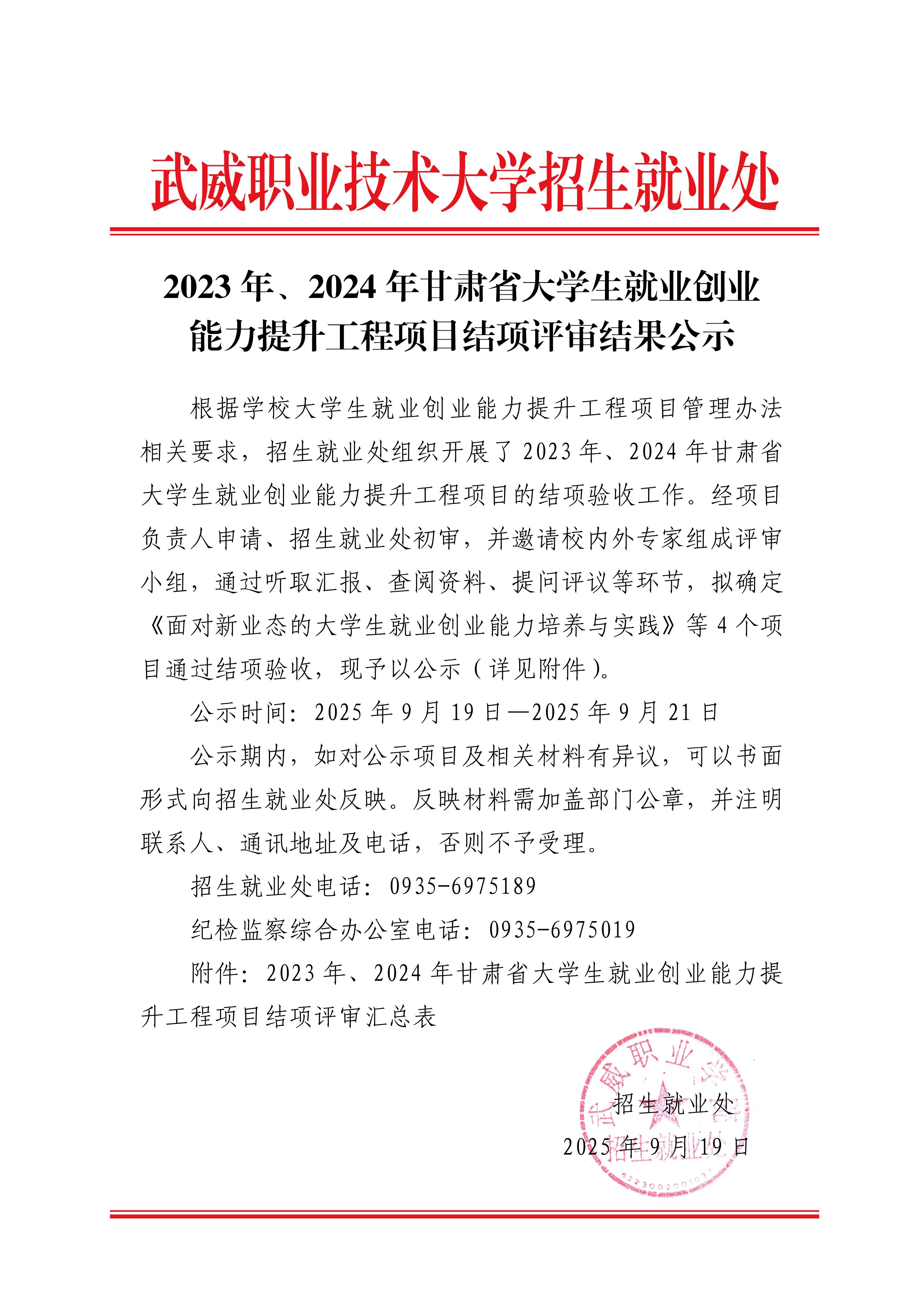 2023年、2024年甘肅省大學(xué)生就業(yè)創(chuàng)業(yè)能力提升工程項目結(jié)項評審結(jié)果公示