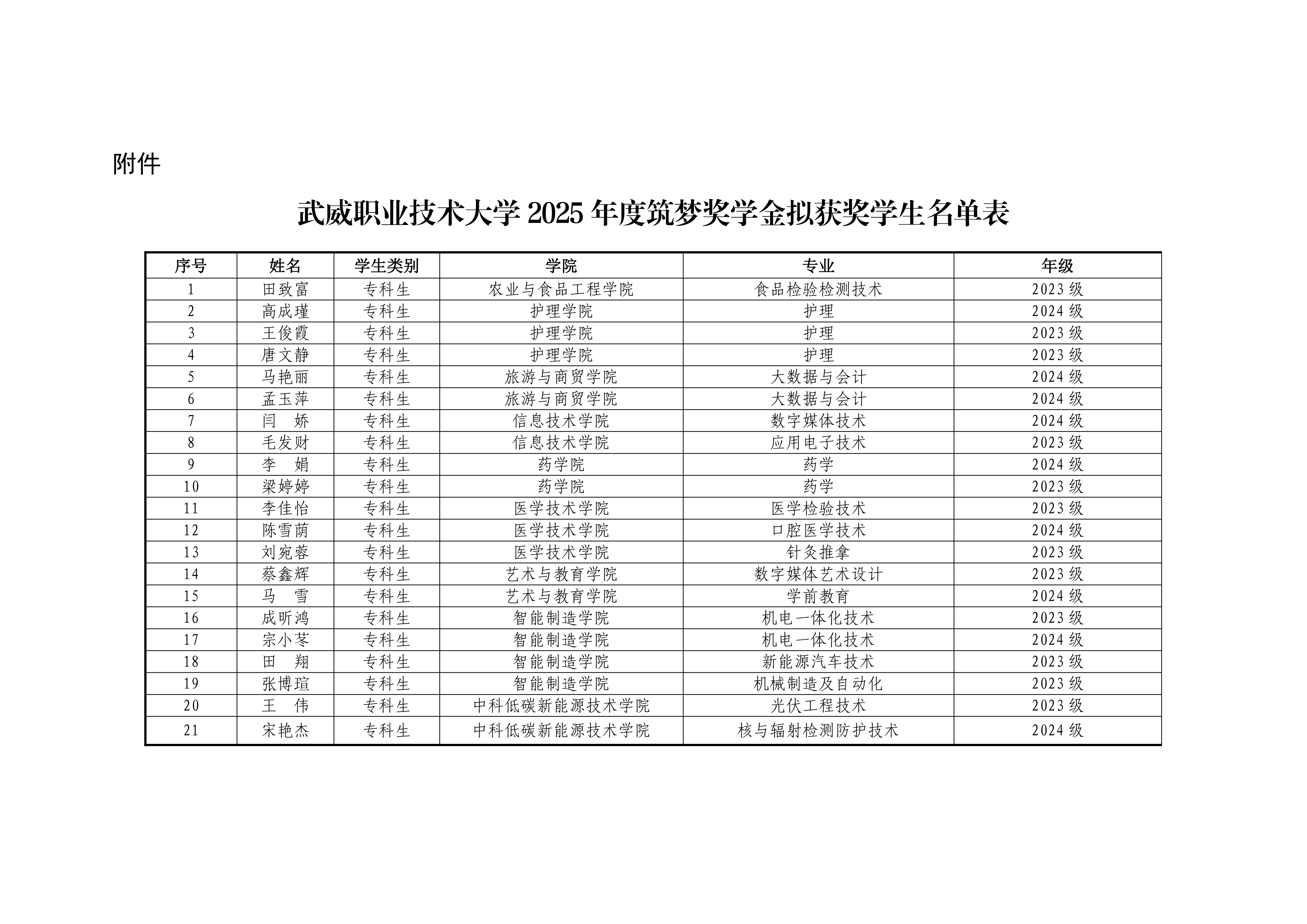 武威職業(yè)技術(shù)大學(xué)關(guān)于馮嘉俊等21名學(xué)生2025-202…