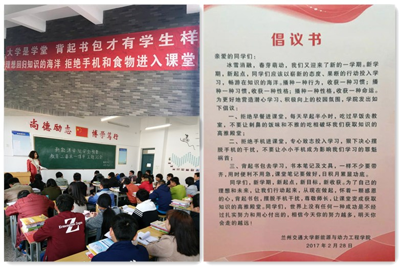 新學(xué)期伊始,新能源學(xué)院要求所有班主任及輔導(dǎo)員老師除了做好學(xué)生課堂管理工作、宿舍安全衛(wèi)生工作、密切關(guān)注“三困生”等常規(guī)工作之外,重點(diǎn)部署了安全預(yù)警教育和“三要求一倡導(dǎo)”教育活動(dòng),即要求學(xué)生上課必須關(guān)閉手機(jī)、不得將食品帶入課堂、不準(zhǔn)在公共場(chǎng)所吸煙,倡導(dǎo)學(xué)生背書(shū)包。
