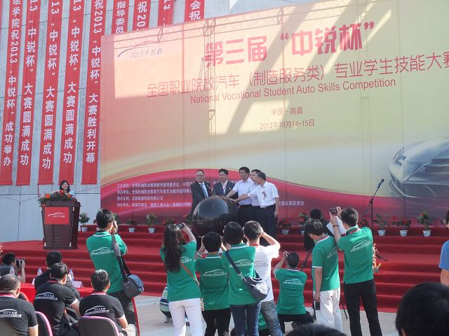 2013年10月14—15日,第三屆“中銳杯”全國職業(yè)院校汽車(制造服務(wù)類)專業(yè)學(xué)生技能大賽”總決賽在江西南昌舉行。全國近百所院校三百多名學(xué)生參加了此次大賽。本次大賽由全國機(jī)械職業(yè)教育教學(xué)指導(dǎo)委員會(huì)、中國汽車流通協(xié)會(huì)、機(jī)械工業(yè)教育發(fā)展中心共同主辦,全國機(jī)械職業(yè)教育汽車類專業(yè)教學(xué)指導(dǎo)委員會(huì)、江西現(xiàn)代職業(yè)技術(shù)學(xué)院承辦。本次大賽裁判和評委均由汽車行業(yè)的各大代表以及資深企業(yè)營銷專家擔(dān)任,因此評選也將更加注重實(shí)踐性和專業(yè)性。