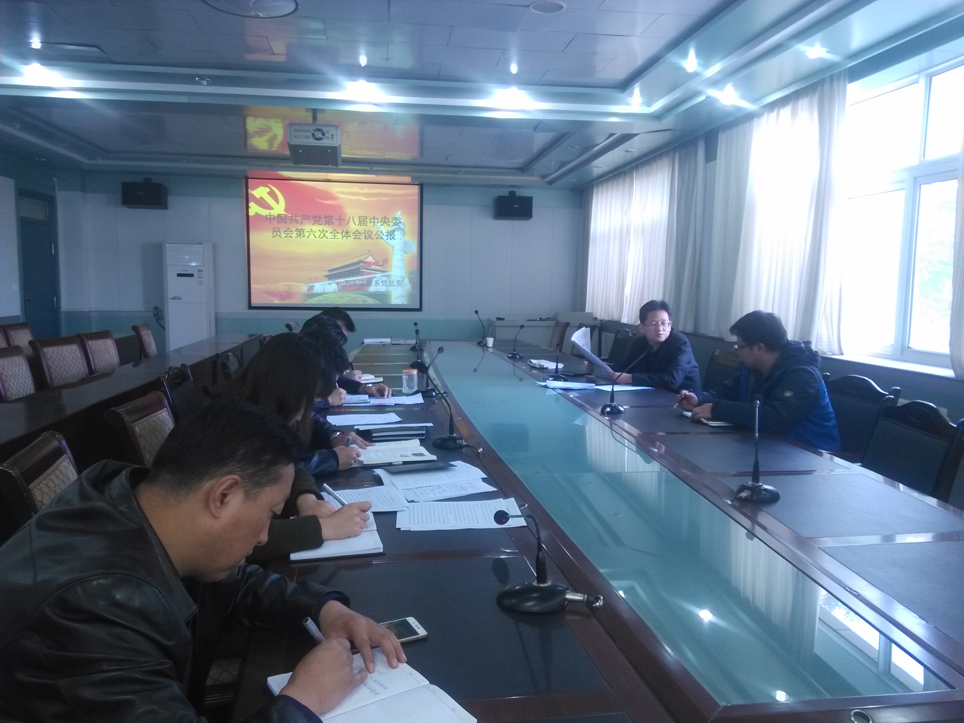 邸光才傳達學(xué)習(xí)了《中國共產(chǎn)黨第十八屆中央委員會第六次全體會議公報》。邸光才指出,黨的十八屆六中全會是在我國進入全面建成小康社會決勝階段召開的一次十分重要的會議。全會聚焦全面從嚴治黨的主題,審議通過的《關(guān)于新形勢下黨內(nèi)政治生活的若干準(zhǔn)則》和《中國共產(chǎn)黨黨內(nèi)監(jiān)督條例》,對于我們堅持和加強黨的領(lǐng)導(dǎo),協(xié)調(diào)推進“四個全面”戰(zhàn)略布局,實現(xiàn)中華民族偉大復(fù)興的中國夢,具有重大的現(xiàn)實意義和深遠的歷史意義。