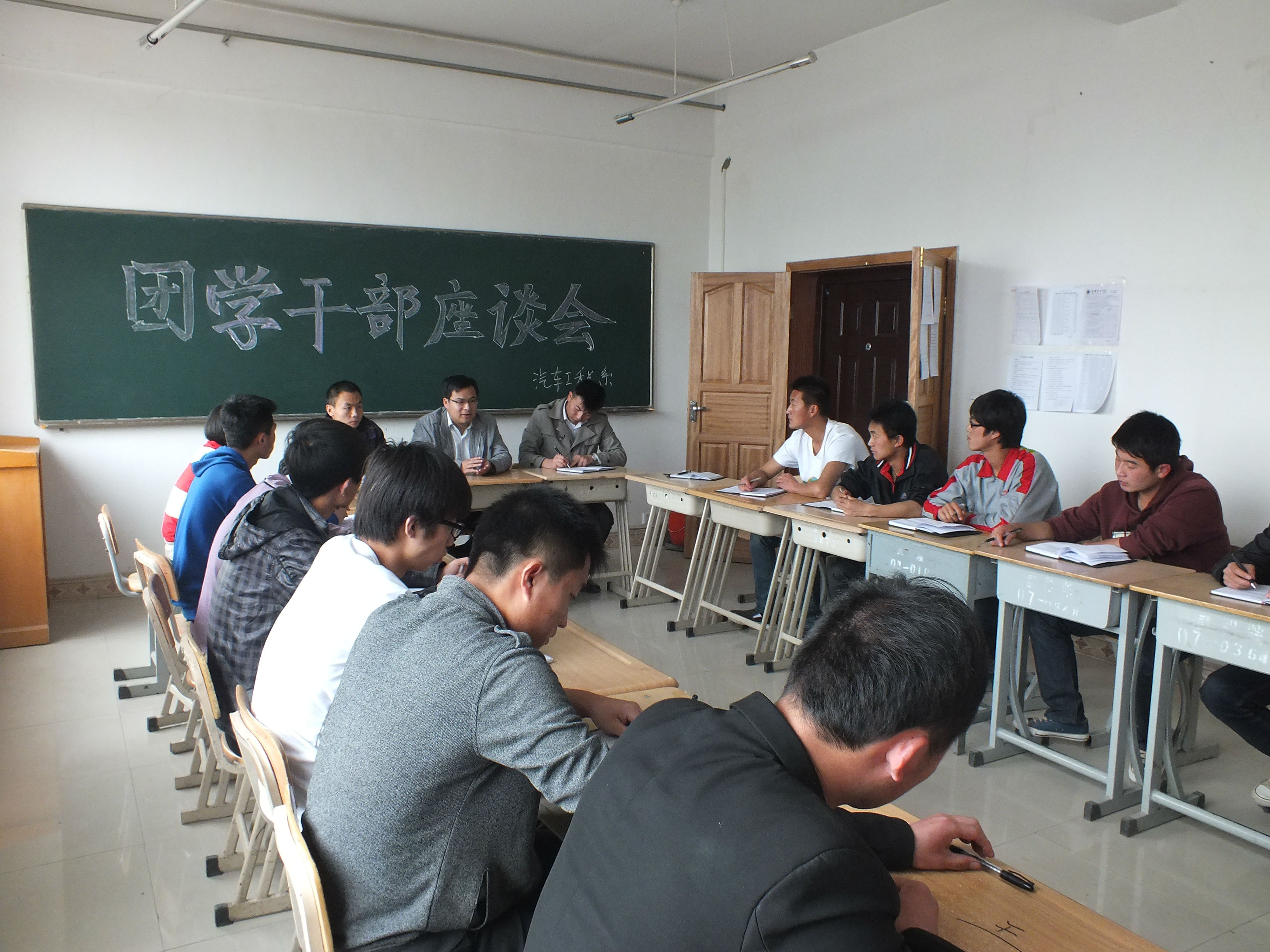 5月7日下午,我系團(tuán)學(xué)干部座談會在實(shí)訓(xùn)樓209舉行。汽車工程系主任王鐸云出席了會議。政治輔導(dǎo)員劉成老師,團(tuán)總支書記劉吉仁老師,學(xué)生會主席,各班班干部等20余人參加大會,大會由劉吉仁老師主持。