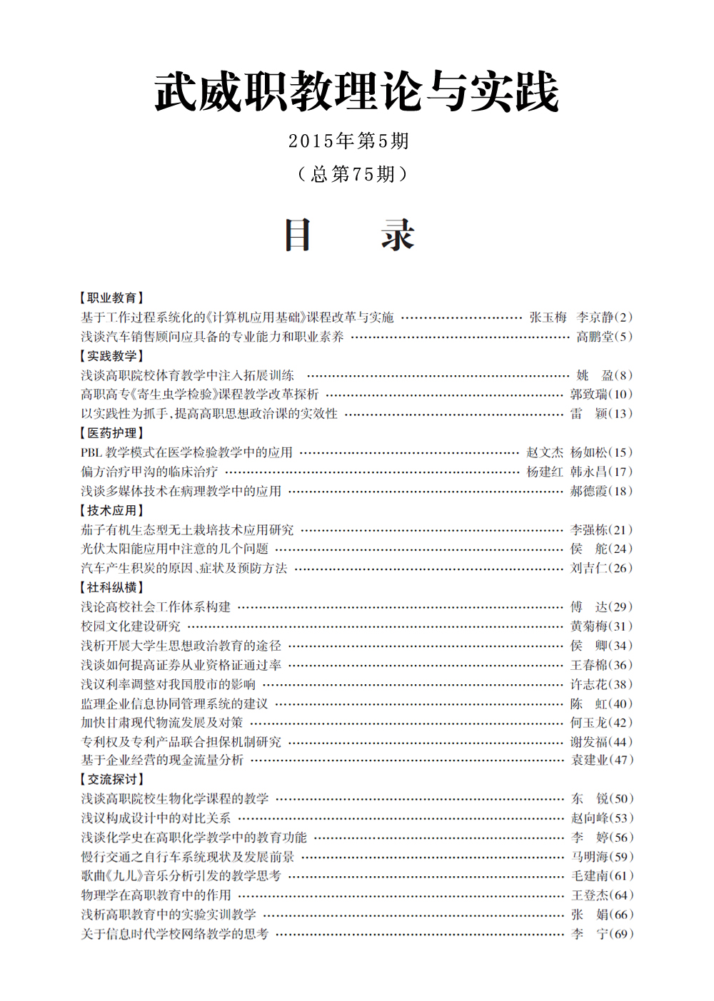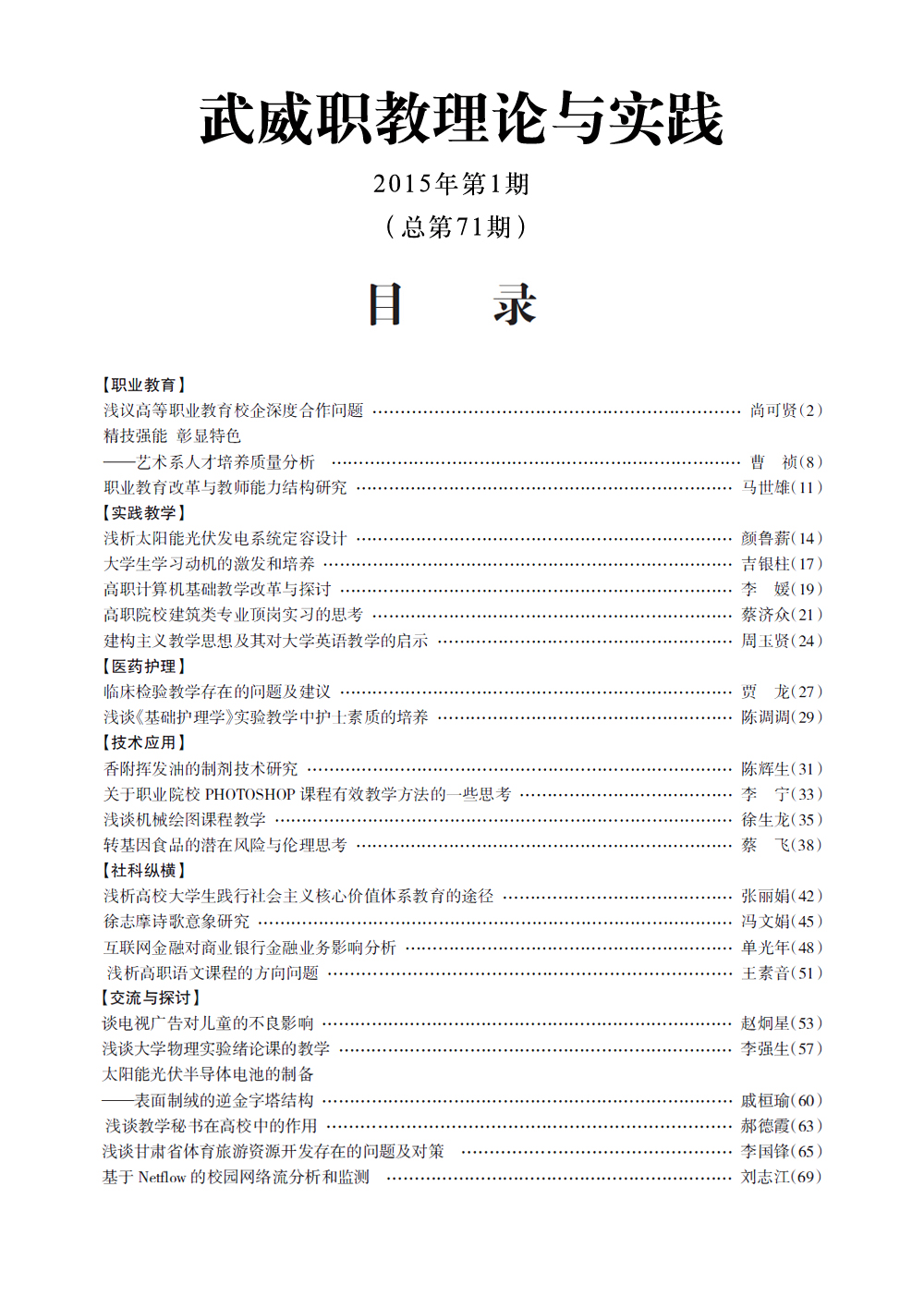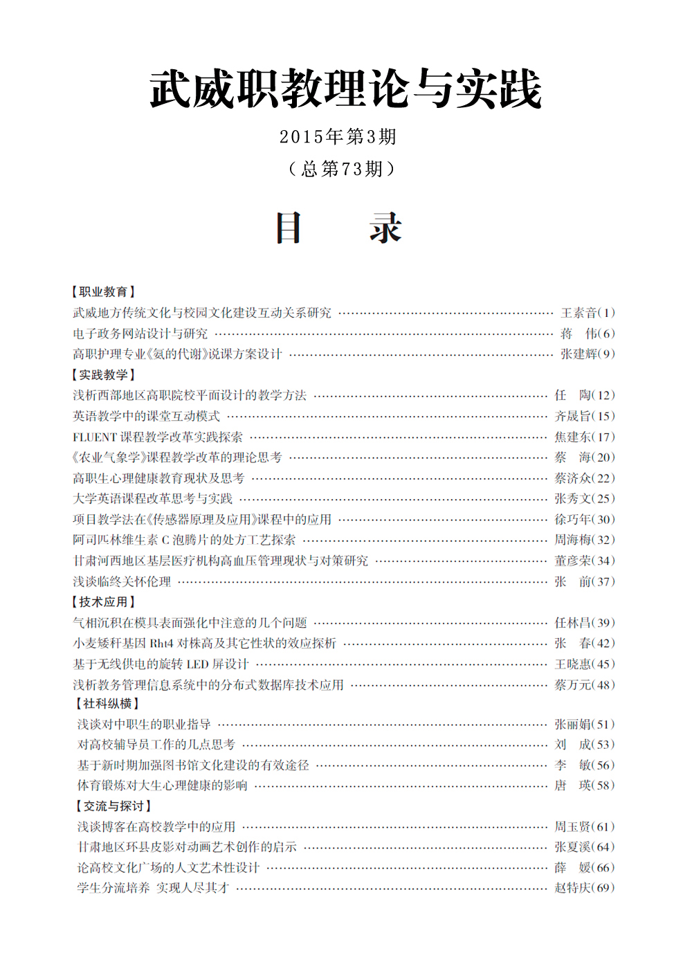 2014年《武威職業(yè)學(xué)院學(xué)報》目錄