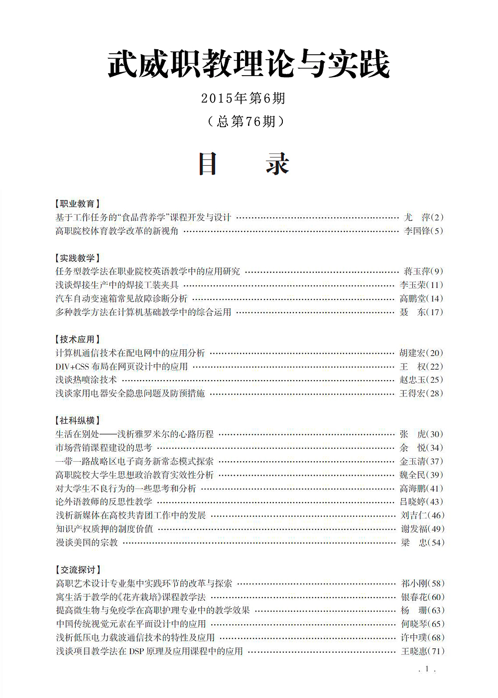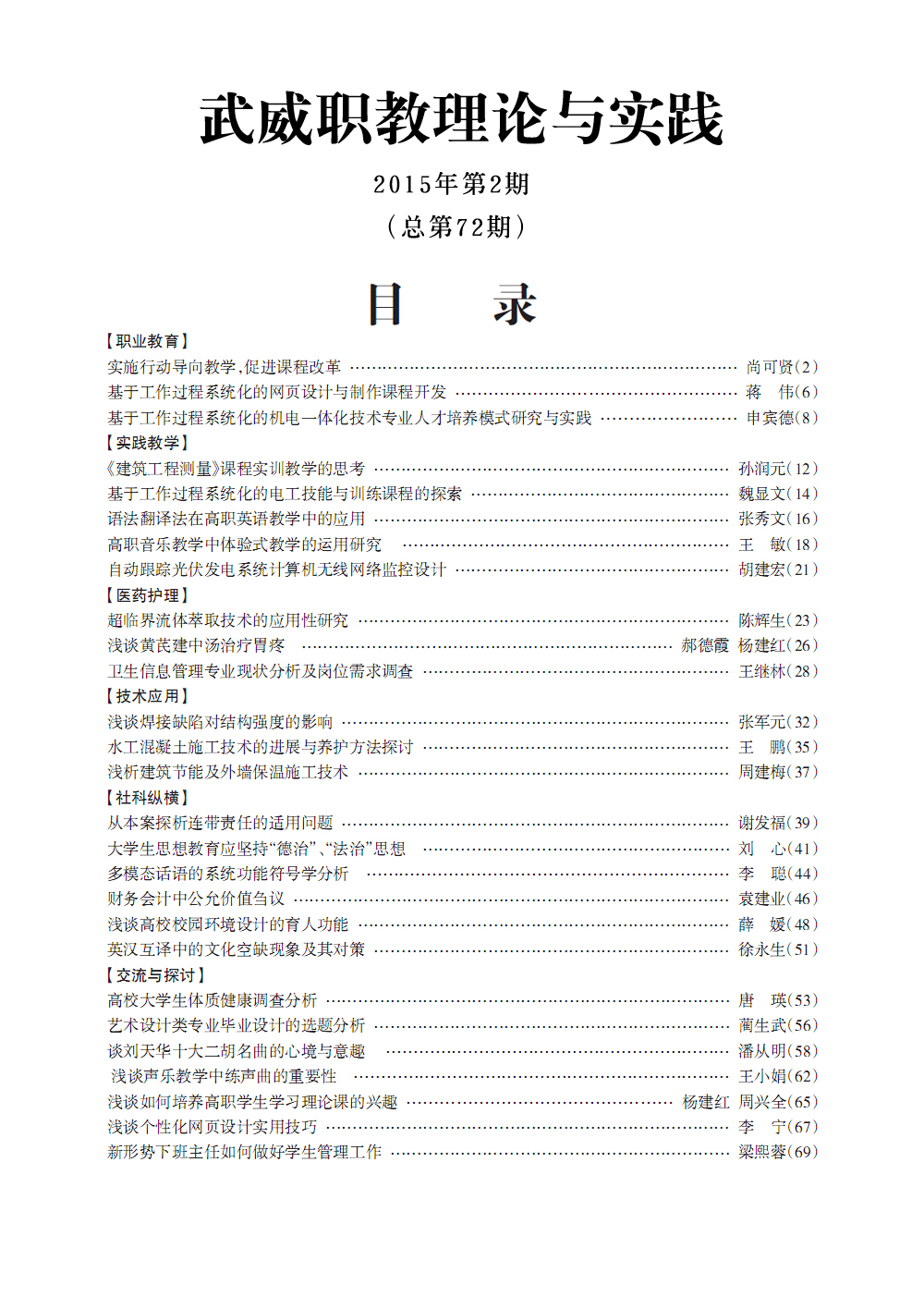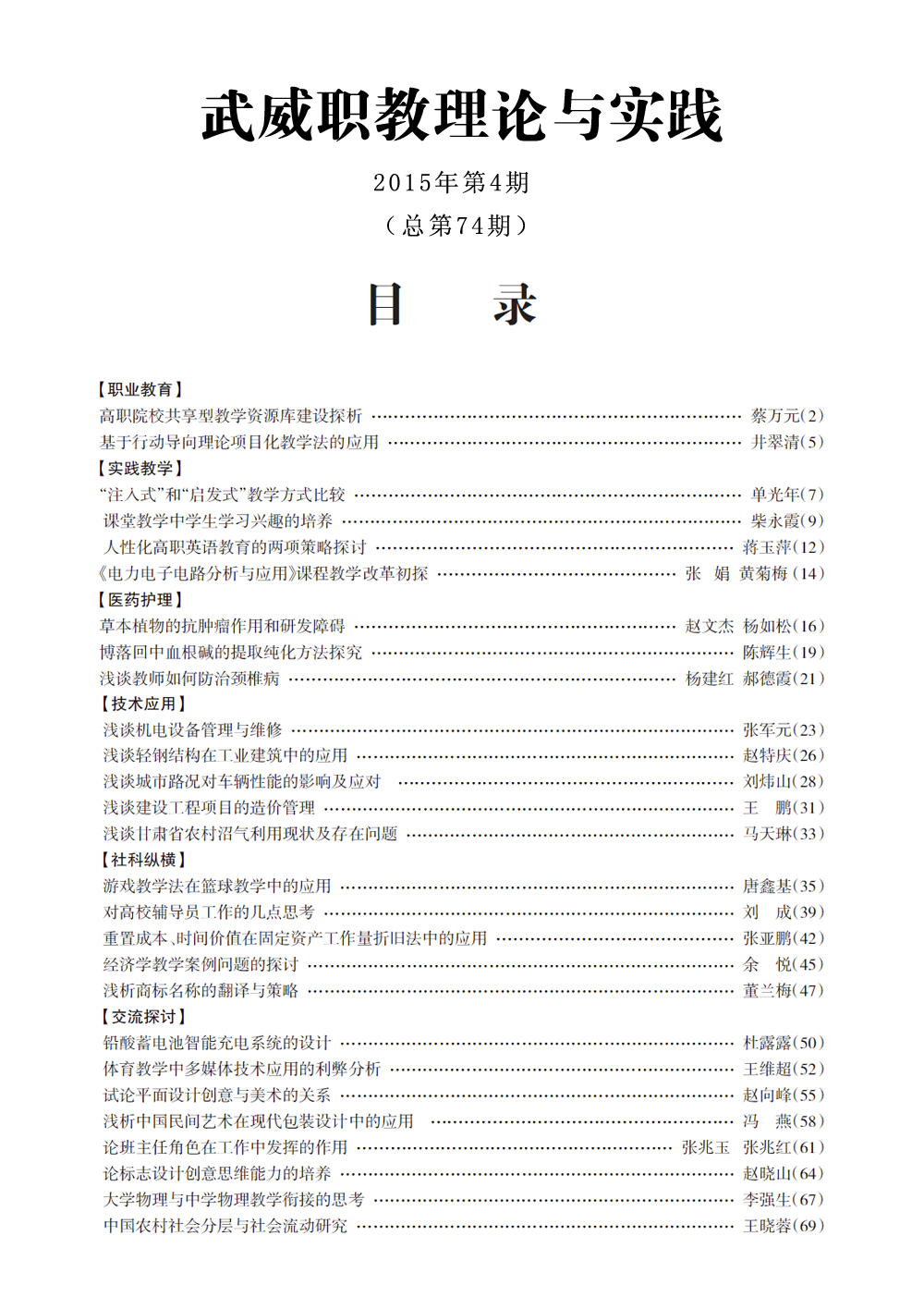 2014年《武威職業(yè)學(xué)院學(xué)報》目錄