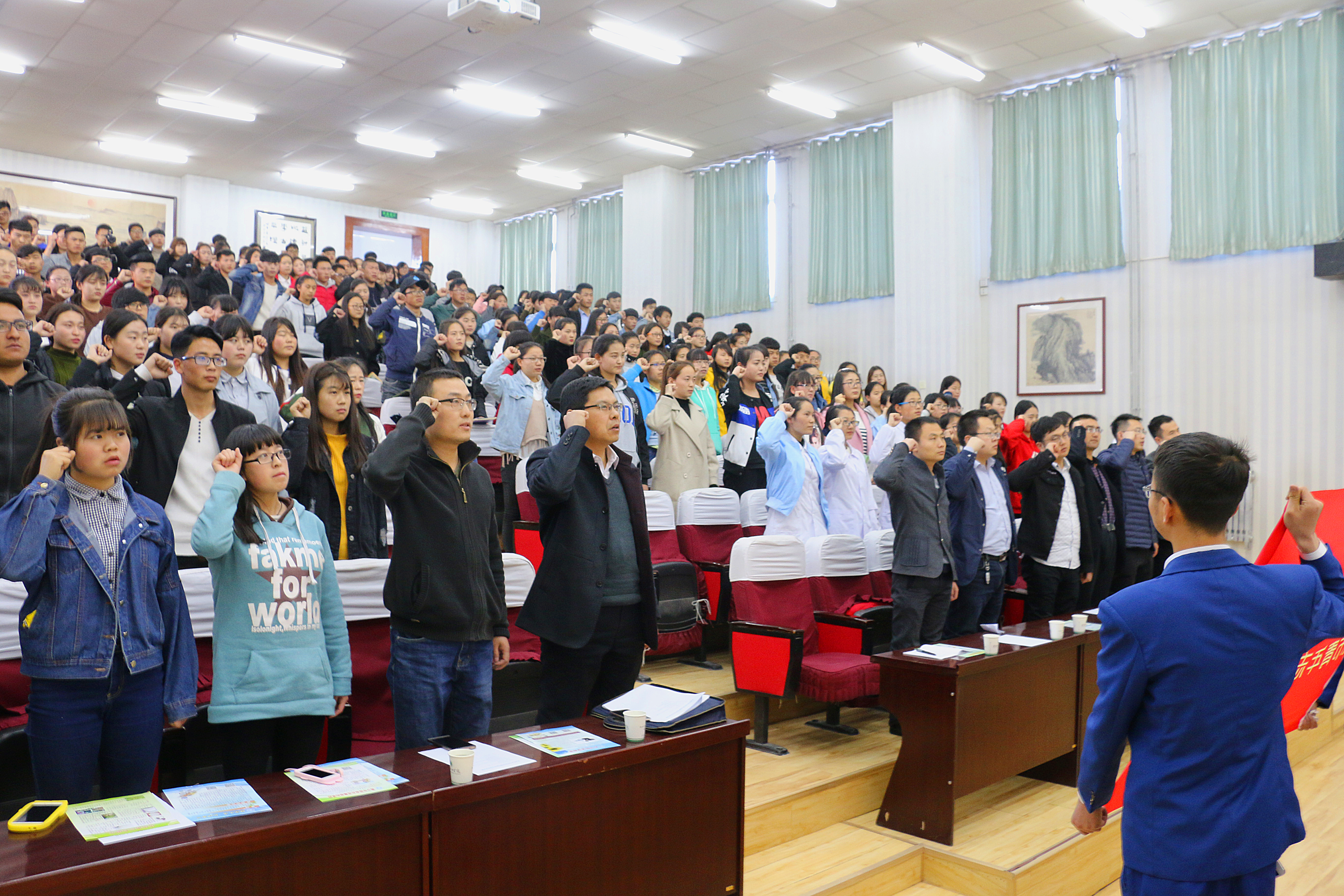 活動(dòng)期間,參會(huì)人員觀看了禁毒宣傳微電影《青春的癮子》,學(xué)生代表上臺(tái)宣讀了《禁毒倡議書》,倡議全校師生積極行動(dòng)起來(lái),從自身做,珍愛生命,遠(yuǎn)離毒品,積極投身禁毒行動(dòng)。最后,參加活動(dòng)的全體師生起立莊嚴(yán)宣誓加入青年志愿者隊(duì)伍,承諾踐行志愿精神,傳播先進(jìn)文化,參與禁毒宣傳斗爭(zhēng),引導(dǎo)更多同學(xué)參與到禁毒的活動(dòng)中,為建設(shè)“無(wú)毒校園”、構(gòu)建和諧社會(huì)發(fā)揮應(yīng)有的作用。