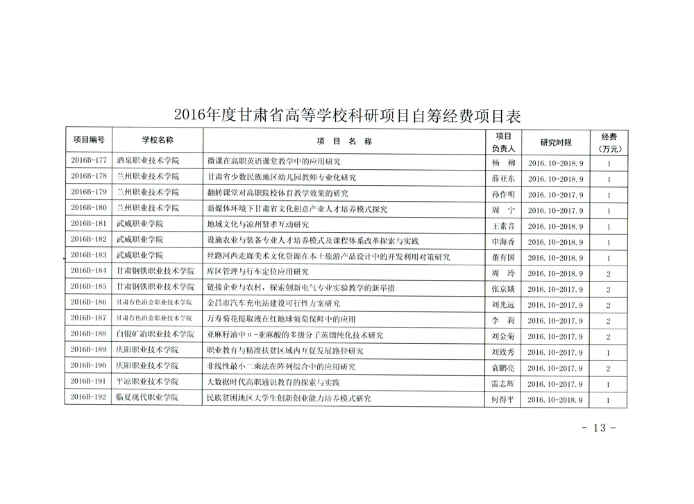 轉(zhuǎn)發(fā)甘肅省財政廳 教育廳文件 關(guān)于下達2016年度甘肅省高等學(xué)??蒲许椖孔曰I經(jīng)費項目的通知