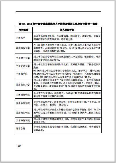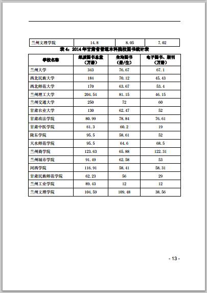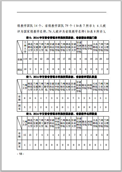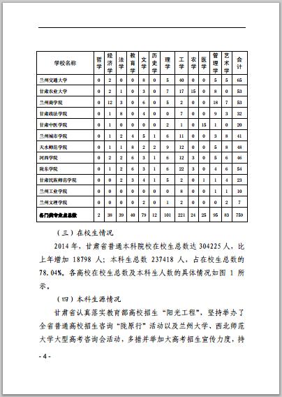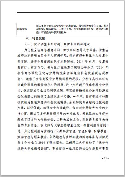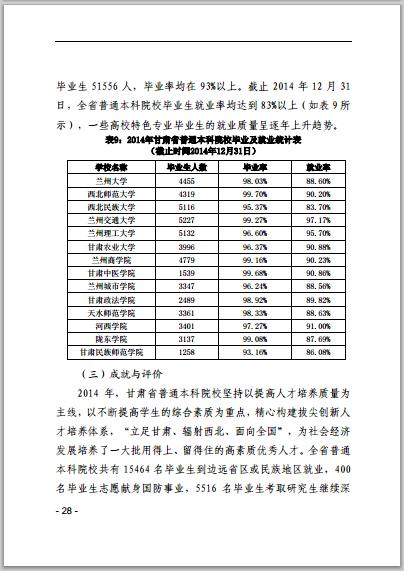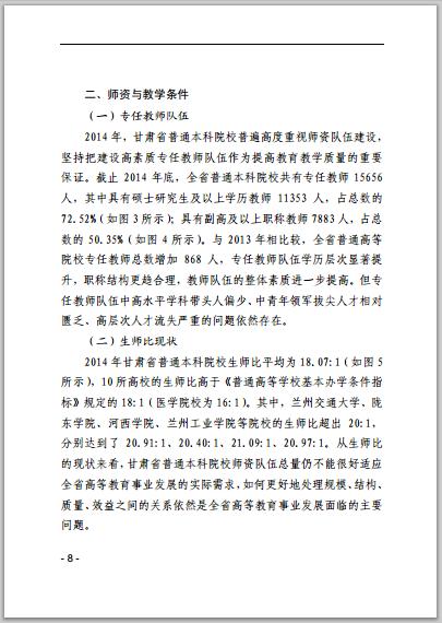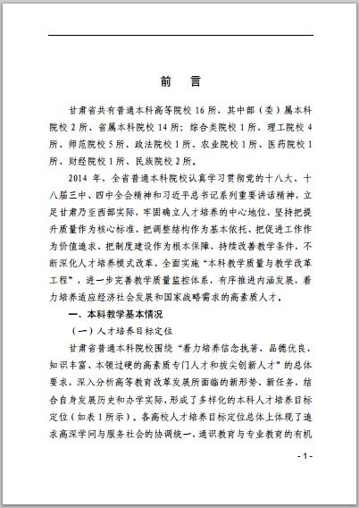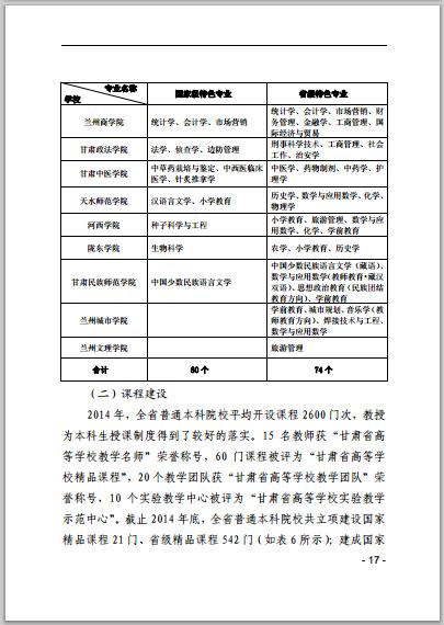 甘肅省普通高等學校2014年本科教學質(zhì)量報告
