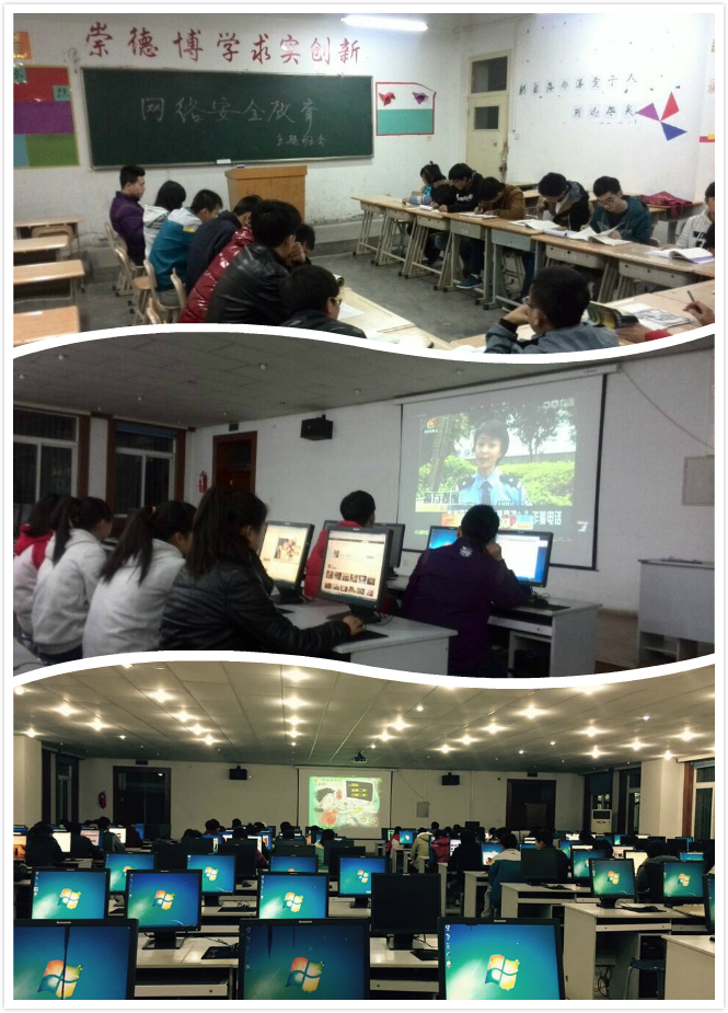 電信系團總支組織各班團支部于2014年11月24日至30日,深入開展了以“網(wǎng)絡(luò)安全宣傳教育”為主題的活動。宣傳周期間,組織各班觀看了與網(wǎng)絡(luò)安全有關(guān)的紀錄片及電影,播放中央網(wǎng)信辦制作的“網(wǎng)絡(luò)安全在我身邊”公益短片等視頻資料;通過QQ、微博、微信等多種網(wǎng)絡(luò)傳播渠道,宣傳網(wǎng)絡(luò)安全知識;召開“網(wǎng)絡(luò)安全教育”主題班會,學生討論并舉例說明大家在網(wǎng)絡(luò)中親身經(jīng)歷過的網(wǎng)絡(luò)危害,并分析其原因,使同學們了解更多的網(wǎng)絡(luò)詐騙形式。