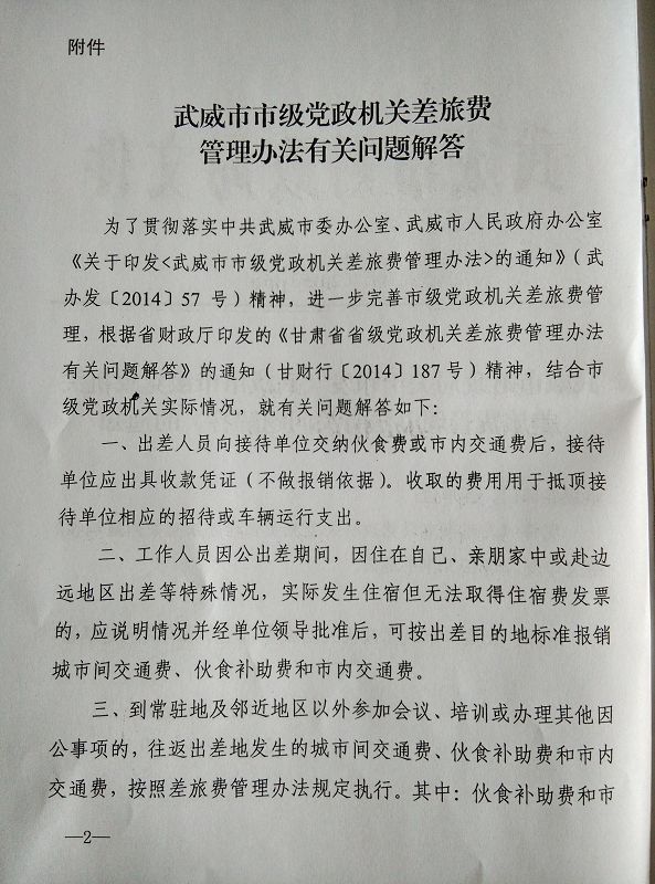 <轉(zhuǎn)發(fā)>武威市市級黨政機關(guān)差旅費管理辦法有關(guān)問題解答