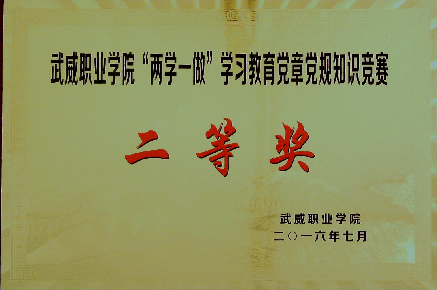 兩學(xué)一做學(xué)習(xí)教育黨章黨規(guī)知識(shí)競(jìng)賽二等獎(jiǎng)