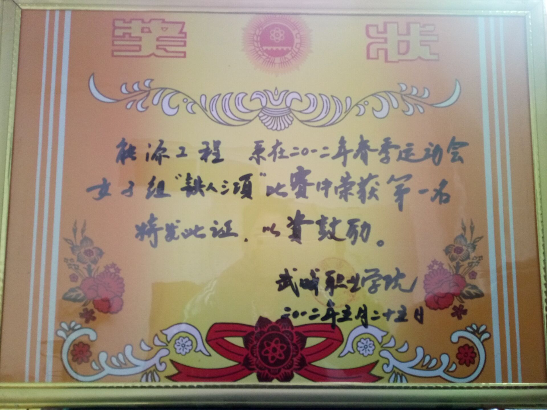 我系代表隊(duì)在2012年春季運(yùn)動(dòng)會(huì)女子組“鐵人三項(xiàng)”比賽中榮獲第一名獎(jiǎng)