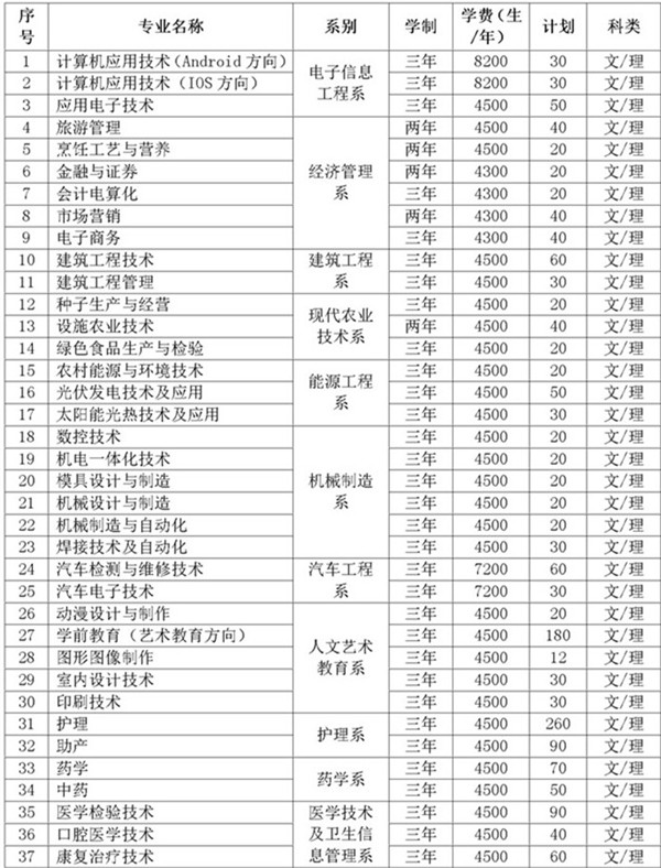 武威職業(yè)學院2019年招生專業(yè)