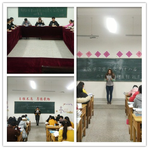 為深入學(xué)習(xí)宣傳十八屆六中全會精神,引導(dǎo)廣大團員青年準(zhǔn)確把握全會的精神實質(zhì)和深刻內(nèi)涵,藥學(xué)系團總支結(jié)合“兩學(xué)一做”學(xué)習(xí)教育和貫徹落實武威市第四次黨代會精神,于12月7日晚,在明遠樓組織各班團支部開展了學(xué)習(xí)黨的十八屆六中全會精神主題團會。團會由各班團支部書記主持,會議傳達了十八屆六中全會精神和武威市第四次黨代會精神,領(lǐng)學(xué)了《中國共產(chǎn)黨第十八屆中央委員會第六次全體會議公報》內(nèi)容。