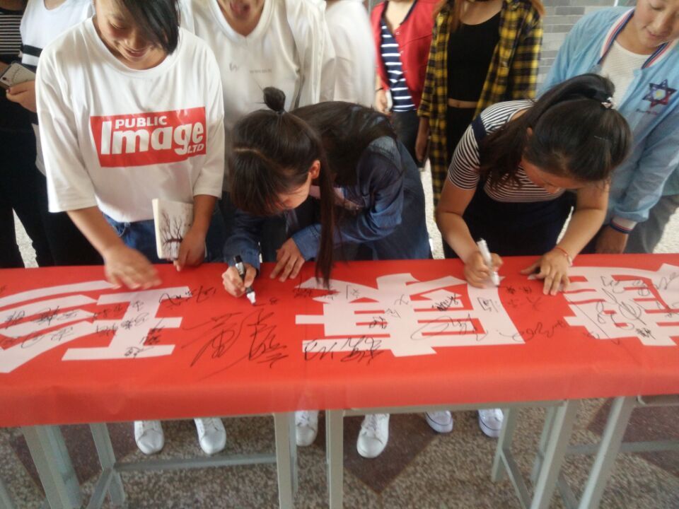 5月22日,系團(tuán)學(xué)會制作橫幅標(biāo)語“關(guān)注健康、珍愛生命”,召集簽名活動。