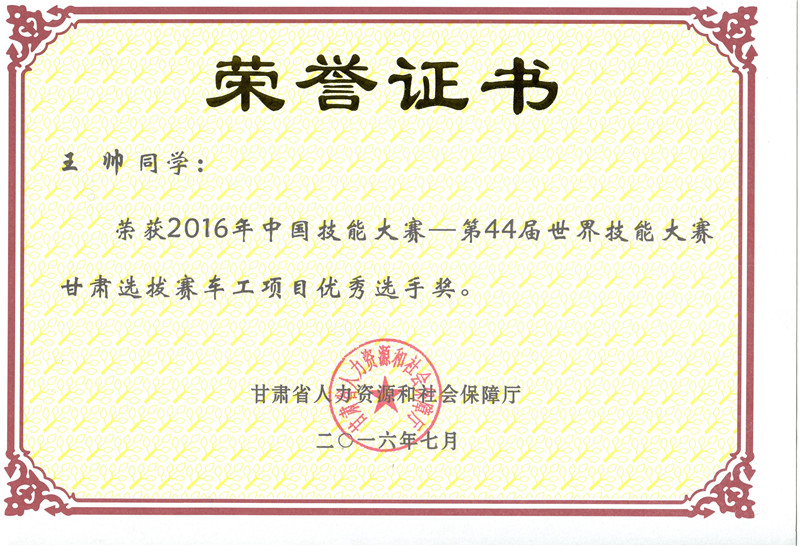 - 下一篇:第44屆世界技能大賽甘肅選拔賽焊接項(xiàng)目?jī)?yōu)秀獎(jiǎng)[ 06-21 ]