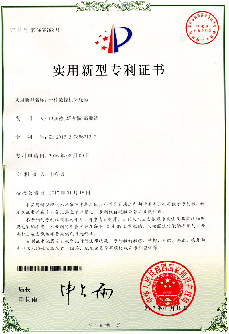 科研成果---實(shí)用新型專利:一種數(shù)控機(jī)床底座