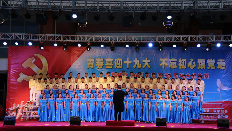 在持續(xù)半個月的合唱訓(xùn)練中,我系參加大合唱的102名同學(xué)和6位老師充分的準(zhǔn)備,以積極飽滿的態(tài)度投入到本次大合唱比賽的訓(xùn)練中,付出了大量的精力,放棄了許多休息時間,展現(xiàn)出了不怕吃苦,堅持不懈,自強自信的精神。比賽中,隊員們齊聚在黨旗下,著裝整齊,精神飽滿,以高昂的熱情、嘹亮的嗓音唱出了對黨的擁戴,對未來的憧憬,贏得了評委及現(xiàn)場觀眾的熱烈掌聲。