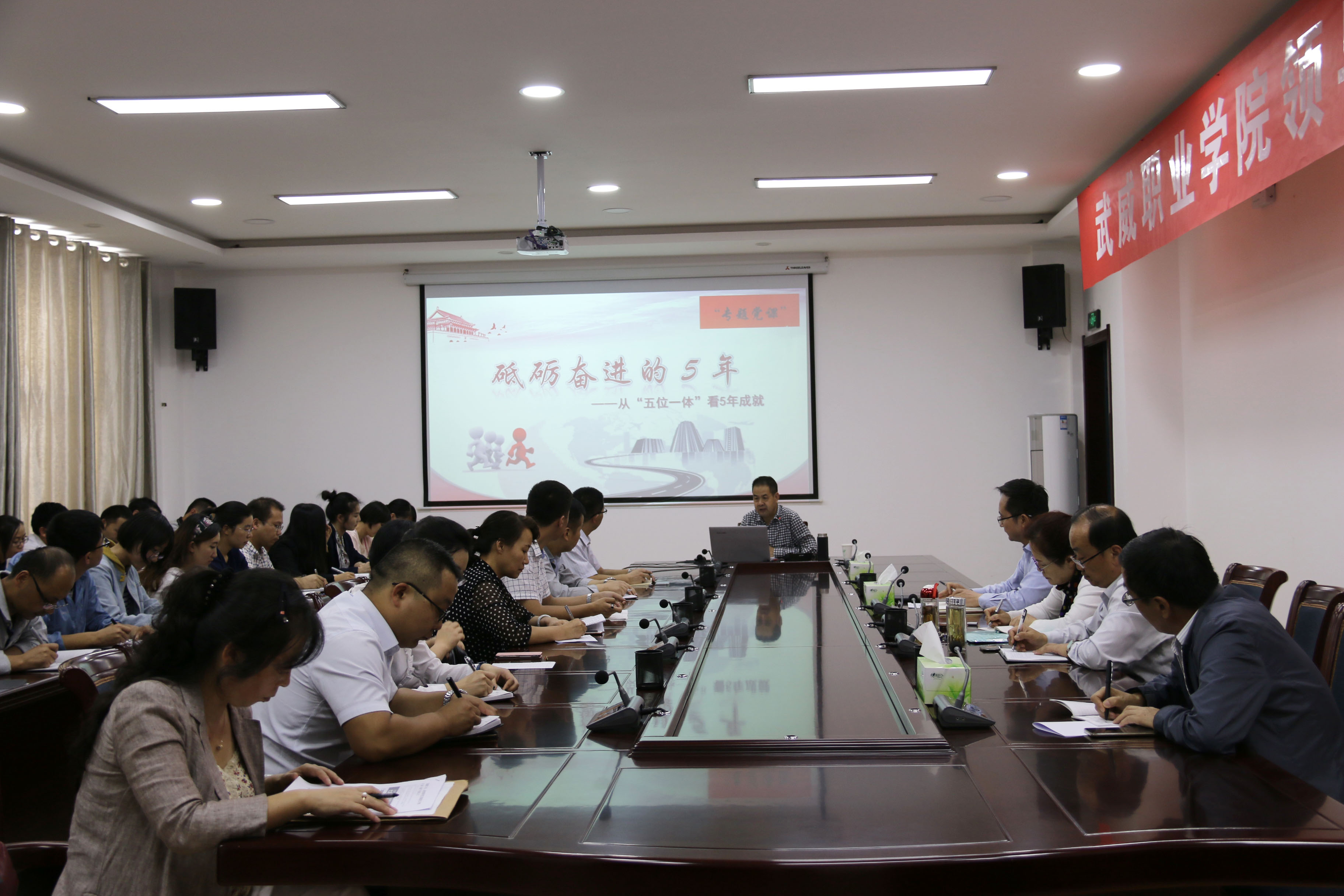 翟存祥作題為《砥礪奮進(jìn)的5年—從“五位一體”看五年成就》黨課報(bào)告。他從經(jīng)濟(jì)發(fā)展、民主政治、文化建設(shè)、改善民生及生態(tài)文明五個(gè)方面系統(tǒng)講述了黨的十八大以來,以習(xí)近平同志為核心的黨中央,通過實(shí)施“四個(gè)全面”戰(zhàn)略布局、“五位一體”總體布局與五大發(fā)展理念等一系列新思路、新戰(zhàn)略、新舉措,使黨和國家事業(yè)取得的歷史性成就。