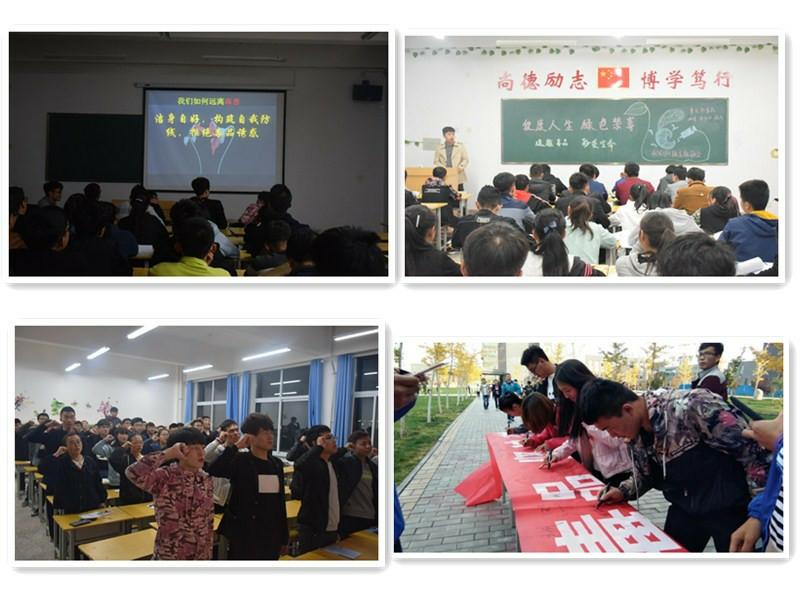 學(xué)院以引導(dǎo)學(xué)生樹立健康人生理念、創(chuàng)造綠色無毒生活為宗旨,認(rèn)真開展了毒品預(yù)防教育“五個(gè)一”活動(dòng)。10月16日晚,各班以問答、演講、辯論、PPT等多種形式開展了以“健康人生,綠色無毒”為主題的班會(huì)并莊嚴(yán)宣誓——珍愛生命,遠(yuǎn)離毒品,堅(jiān)決禁毒;10月17日晚,學(xué)院組織同學(xué)們觀看了禁毒影視劇,并設(shè)置知識(shí)競(jìng)賽環(huán)節(jié),同學(xué)們參加踴躍;10月18日下午,學(xué)院在明德樓前舉行禁毒宣傳簽名活動(dòng),學(xué)院院長(zhǎng)董海鷹簽名并與同學(xué)們親切交談?;顒?dòng)期間,學(xué)院還開展以“健康人生、綠色無毒”為主題的禁毒征文比賽,并對(duì)優(yōu)秀作品在學(xué)院官方QQ、微信、宣傳欄等平臺(tái)進(jìn)行展示和粘貼。此次禁毒活動(dòng)宣傳形式廣泛,同學(xué)們參與度高,宣傳效果明顯。