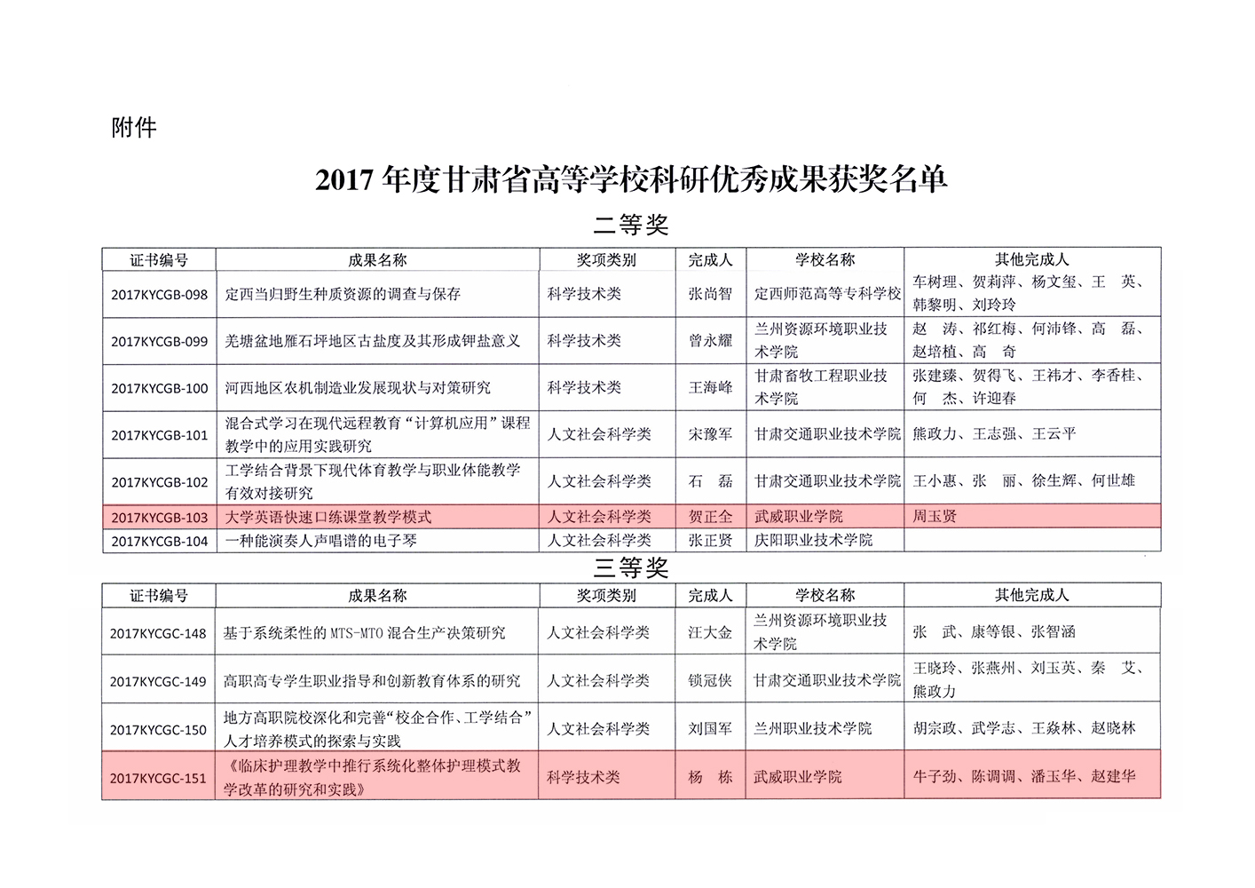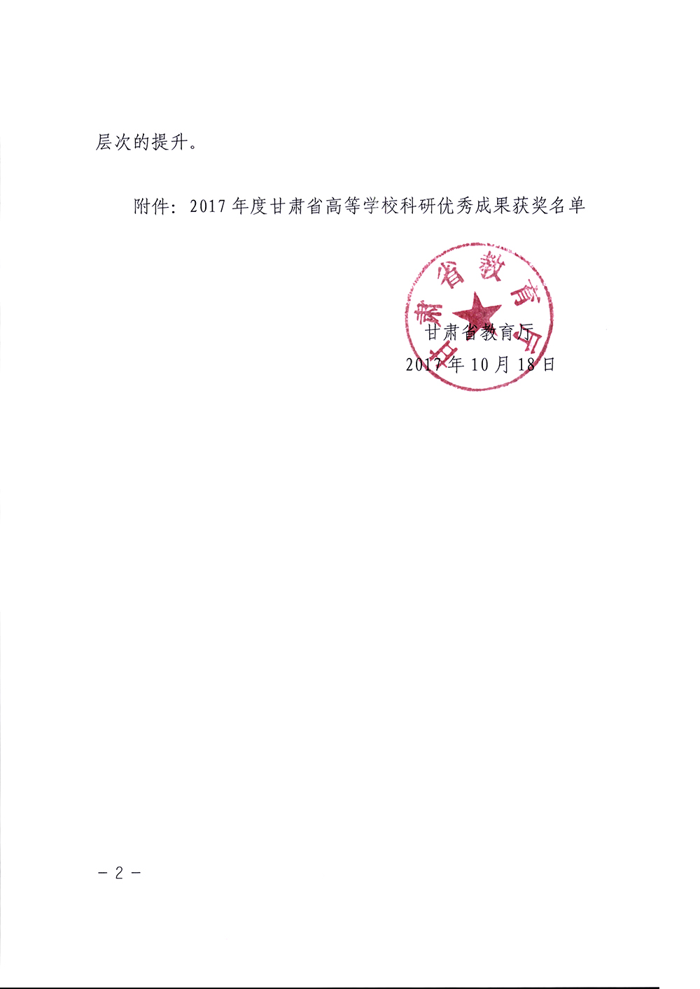 轉(zhuǎn)發(fā)甘肅省教育廳關(guān)于公布2017年度甘肅省高等學(xué)??蒲袃?yōu)秀成果獎(jiǎng)獲獎(jiǎng)名單的通知