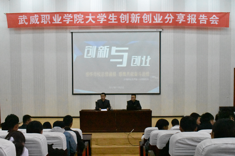 為進一步提升我院大學生的綜合素質(zhì)和創(chuàng)新、創(chuàng)業(yè)能力,培養(yǎng)大學生的創(chuàng)業(yè)意識、思維和技能,增強大學生的專業(yè)信心及創(chuàng)業(yè)信心,以創(chuàng)業(yè)帶動就業(yè),正確引導同學們以健康積極的心態(tài)開展創(chuàng)新、創(chuàng)業(yè)及就業(yè)活動。2017年11月2日,我院07級優(yōu)秀畢業(yè)生蘆超創(chuàng)業(yè)就業(yè)分享報告會在學院正德廳隆重舉行。本次大會由創(chuàng)新創(chuàng)業(yè)中心承辦,我院07級畢業(yè)生蘆超,現(xiàn)任甘肅擺渡人文化發(fā)展有限公司總經(jīng)理、武威職業(yè)學院大學生創(chuàng)業(yè)導師、共青團創(chuàng)業(yè)宣講團成員、甘肅菜鳥電子商務有限公司特聘講師,應邀出席并做了精彩的報告。全院師生二百多人參加了此次大會,報告會由雙創(chuàng)中心胡建宏老師主持。