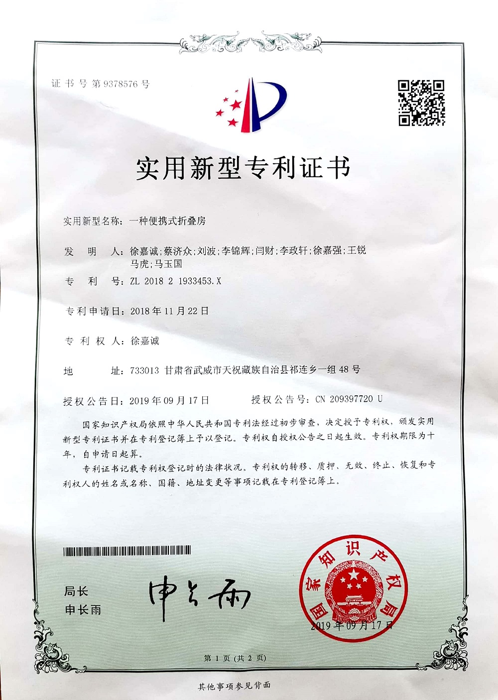 2020年何寶寶等等人申報甘肅省大學生創(chuàng)新創(chuàng)業(yè)訓練計劃項目《太陽能水炕的開發(fā)》